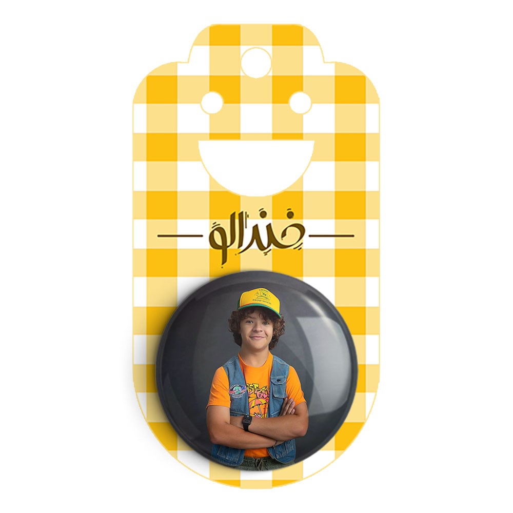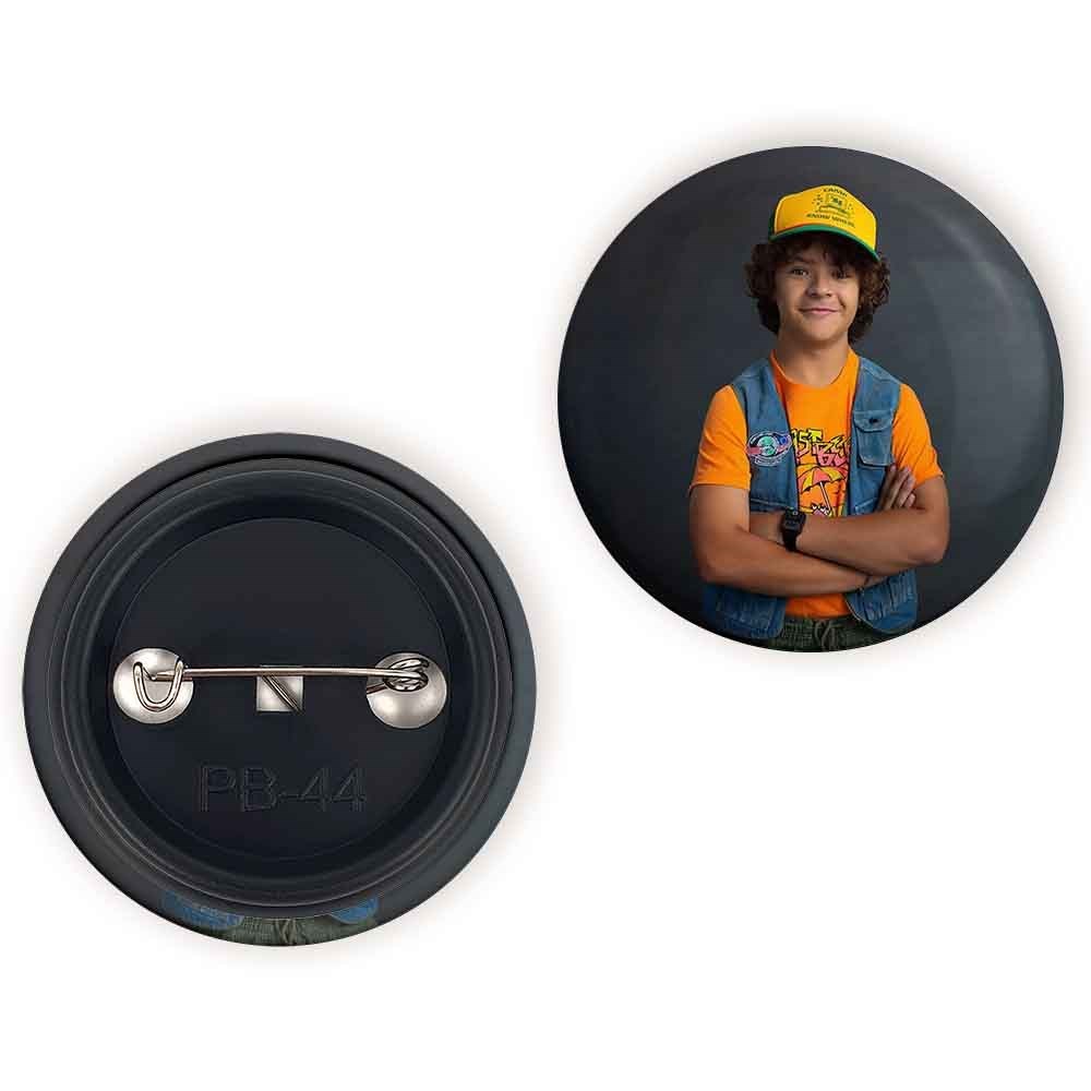 پیکسل 44 میلی متری داستین سریال استرنجر تینگز Stranger Things خندالو با روکش سلفون حرارتی مات مخملی ضدخش و قطعه پشتی رنگی تولید شده است.پلاستیکی پشت پیکسل با سوزن یک تکه ثابت و بدون لغزش و جا به جایی، ایستایی بسیار بهتری نسبت به پشتی فلزی پیکسل دارند که این مهم در تولید این محصول نیز رعایت شده است.