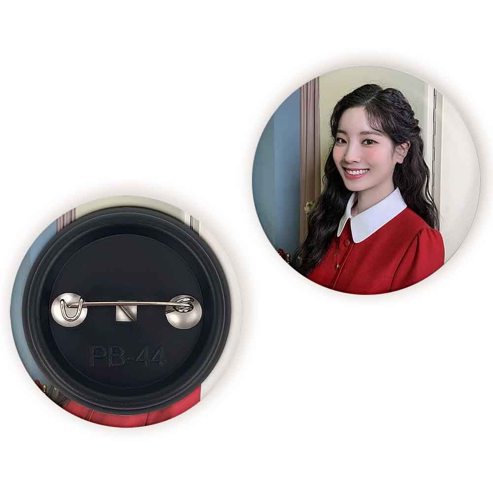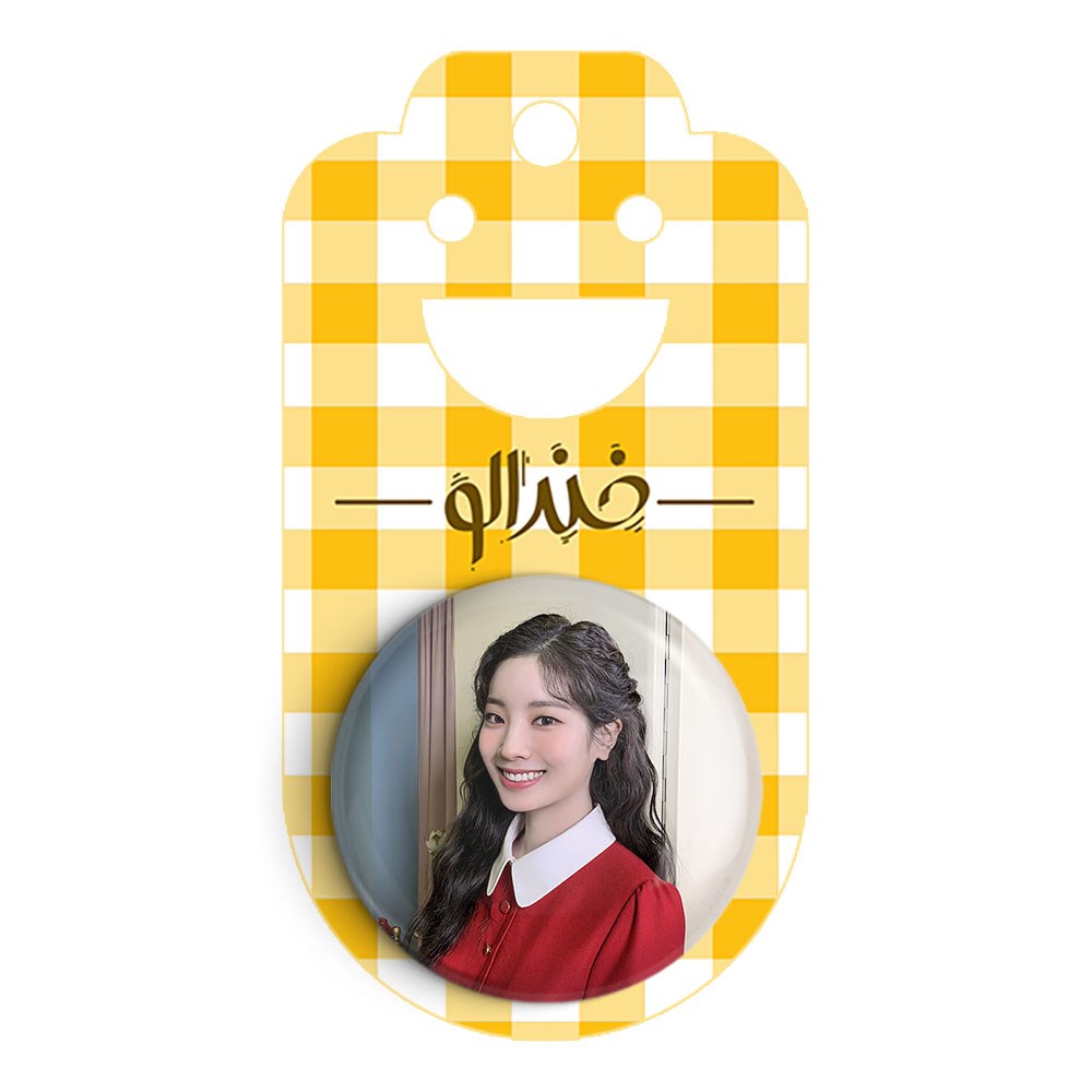 پیکسل 44 میلی متری داهیون گروه توایس TWICE خندالو با روکش سلفون حرارتی مات مخملی ضدخش و قطعه پشتی رنگی تولید شده است.پلاستیکی پشت پیکسل با سوزن یک تکه ثابت و بدون لغزش و جا به جایی، ایستایی بسیار بهتری نسبت به پشتی فلزی پیکسل دارند که این مهم در تولید این محصول نیز رعایت شده است.