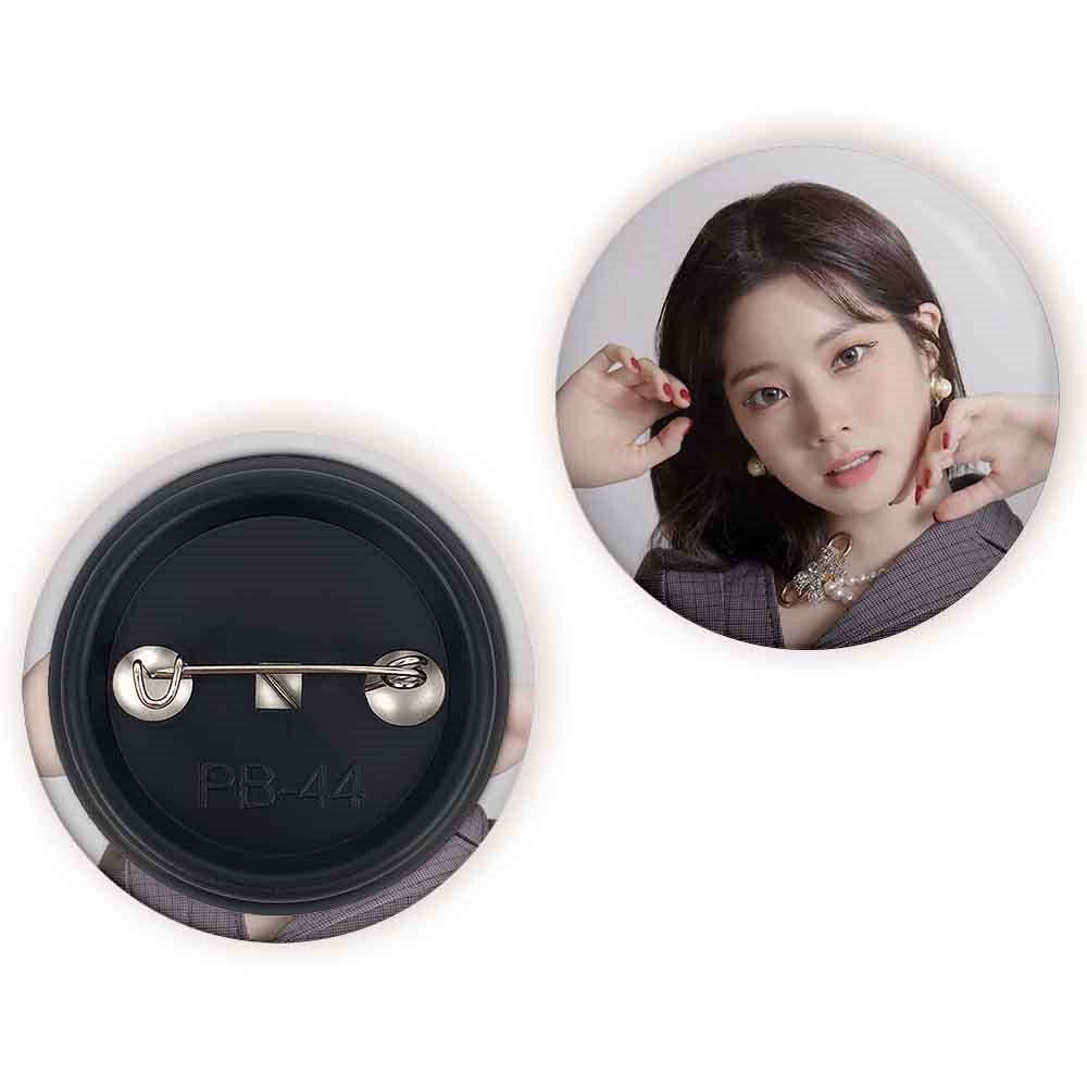 پیکسل 44 میلی متری داهیون گروه توایس TWICE خندالو با روکش سلفون حرارتی مات مخملی ضدخش و قطعه پشتی رنگی تولید شده است.پلاستیکی پشت پیکسل با سوزن یک تکه ثابت و بدون لغزش و جا به جایی، ایستایی بسیار بهتری نسبت به پشتی فلزی پیکسل دارند که این مهم در تولید این محصول نیز رعایت شده است.