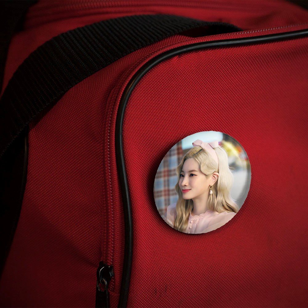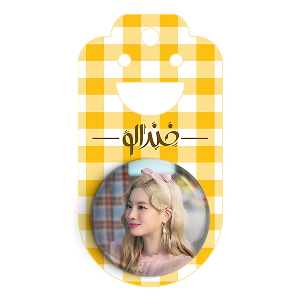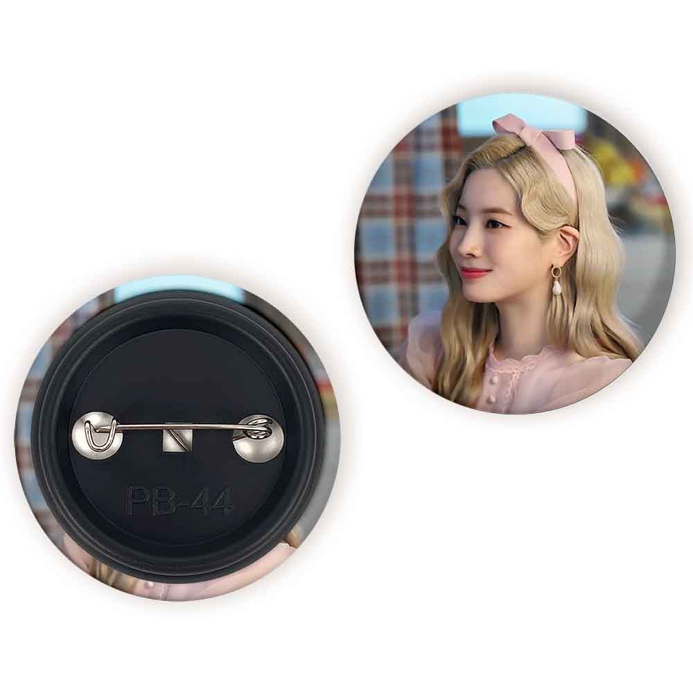پیکسل 44 میلی متری داهیون گروه توایس TWICE خندالو با روکش سلفون حرارتی مات مخملی ضدخش و قطعه پشتی رنگی تولید شده است.پلاستیکی پشت پیکسل با سوزن یک تکه ثابت و بدون لغزش و جا به جایی، ایستایی بسیار بهتری نسبت به پشتی فلزی پیکسل دارند که این مهم در تولید این محصول نیز رعایت شده است.