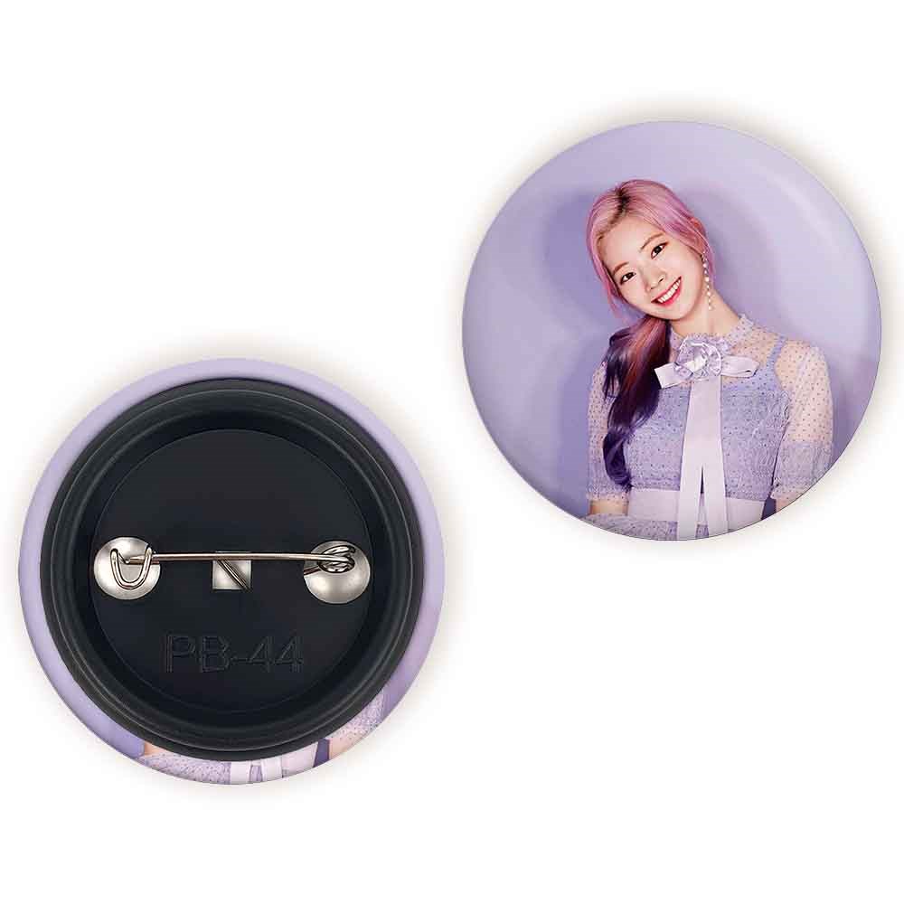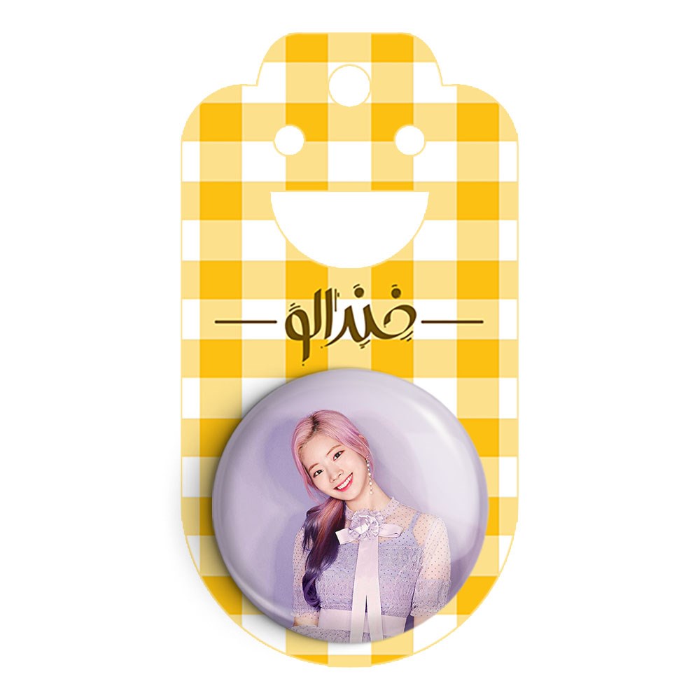 پیکسل 44 میلی متری داهیون گروه توایس TWICE خندالو با روکش سلفون حرارتی مات مخملی ضدخش و قطعه پشتی رنگی تولید شده است.پلاستیکی پشت پیکسل با سوزن یک تکه ثابت و بدون لغزش و جا به جایی، ایستایی بسیار بهتری نسبت به پشتی فلزی پیکسل دارند که این مهم در تولید این محصول نیز رعایت شده است.