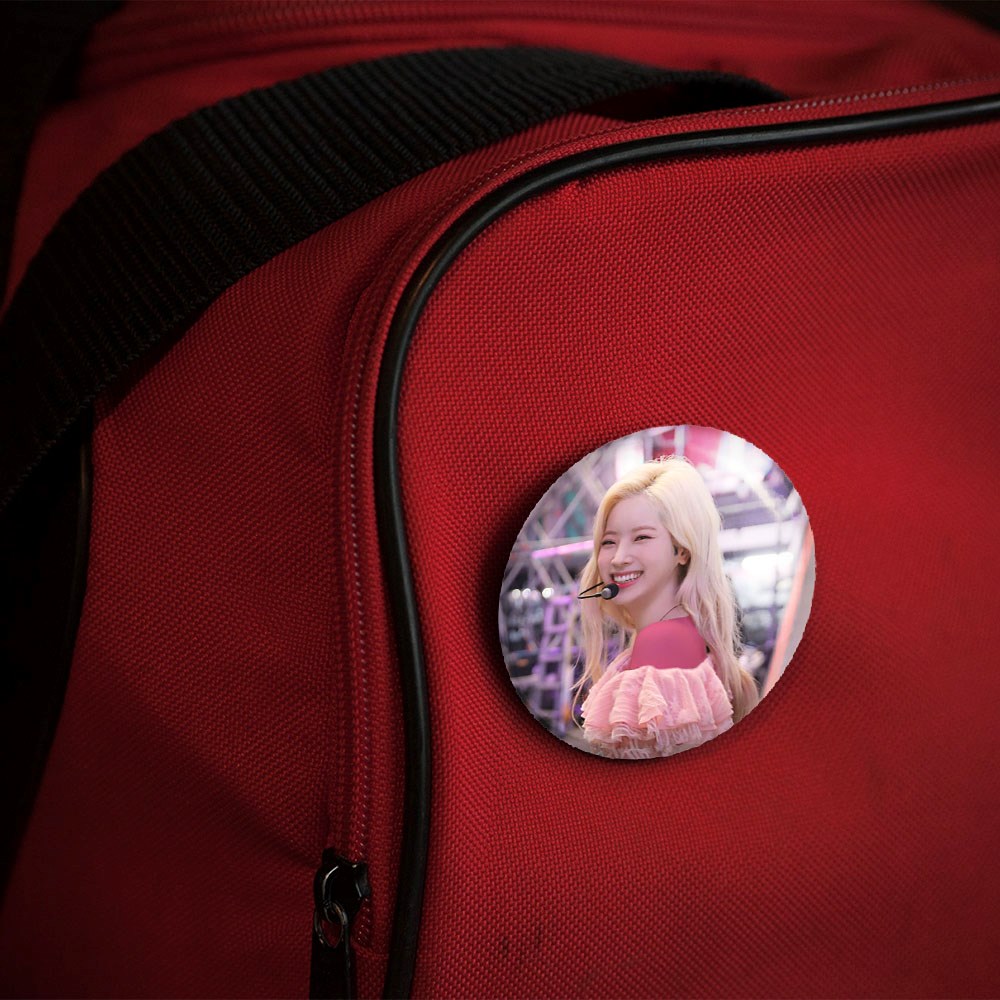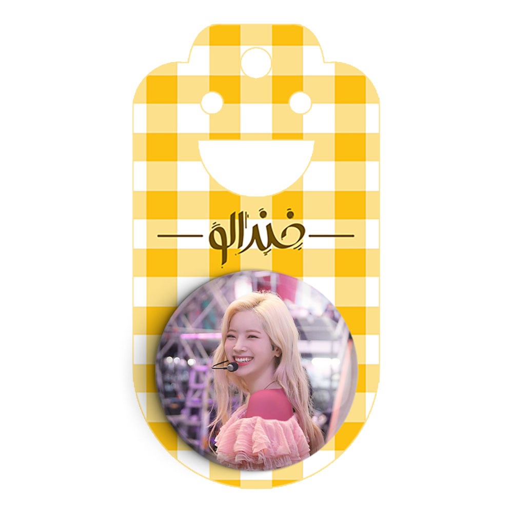پیکسل 44 میلی متری داهیون گروه توایس TWICE خندالو با روکش سلفون حرارتی مات مخملی ضدخش و قطعه پشتی رنگی تولید شده است.پلاستیکی پشت پیکسل با سوزن یک تکه ثابت و بدون لغزش و جا به جایی، ایستایی بسیار بهتری نسبت به پشتی فلزی پیکسل دارند که این مهم در تولید این محصول نیز رعایت شده است.