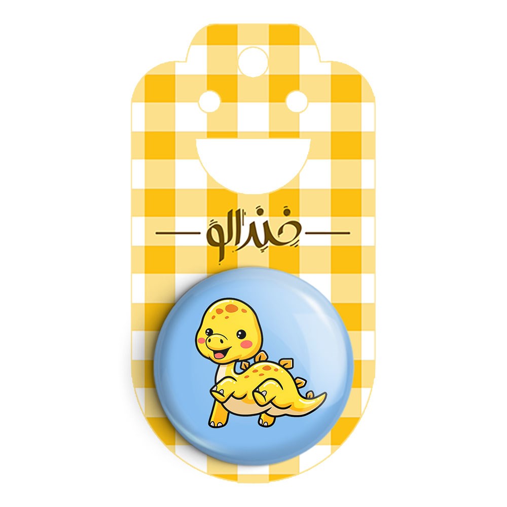 پیکسل 44 میلی متری دایناسور بامزه خندالو با روکش سلفون حرارتی مات مخملی ضدخش و قطعه پشتی رنگی تولید شده است.پلاستیکی پشت پیکسل با سوزن یک تکه ثابت و بدون لغزش و جا به جایی، ایستایی بسیار بهتری نسبت به پشتی فلزی پیکسل دارند که این مهم در تولید این محصول نیز رعایت شده است.