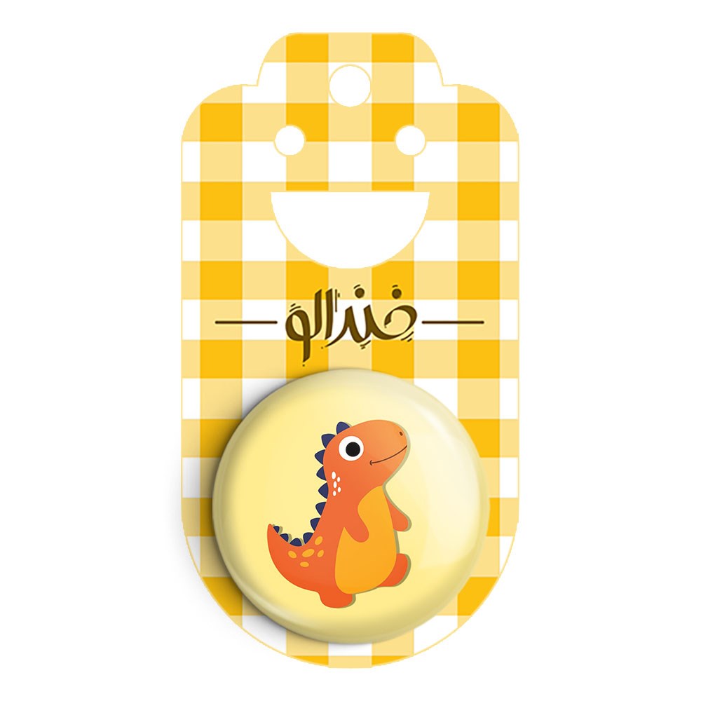 پیکسل 44 میلی متری دایناسور بامزه خندالو با روکش سلفون حرارتی مات مخملی ضدخش و قطعه پشتی رنگی تولید شده است.پلاستیکی پشت پیکسل با سوزن یک تکه ثابت و بدون لغزش و جا به جایی، ایستایی بسیار بهتری نسبت به پشتی فلزی پیکسل دارند که این مهم در تولید این محصول نیز رعایت شده است.