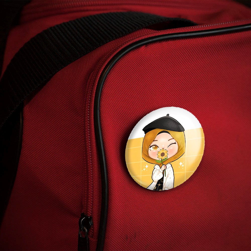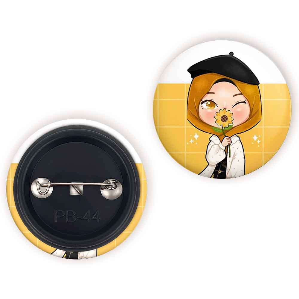 پیکسل 44 میلی متری دخترانه باحجاب خندالو با روکش سلفون حرارتی مات مخملی ضدخش و قطعه پشتی رنگی تولید شده است.پلاستیکی پشت پیکسل با سوزن یک تکه ثابت و بدون لغزش و جا به جایی، ایستایی بسیار بهتری نسبت به پشتی فلزی پیکسل دارند که این مهم در تولید این محصول نیز رعایت شده است.