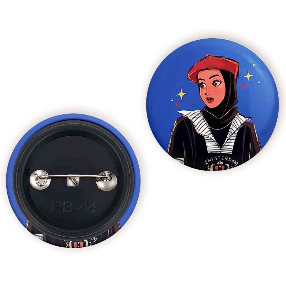 پیکسل 44 میلی متری دخترانه باحجاب خندالو با روکش سلفون حرارتی مات مخملی ضدخش و قطعه پشتی رنگی تولید شده است.پلاستیکی پشت پیکسل با سوزن یک تکه ثابت و بدون لغزش و جا به جایی، ایستایی بسیار بهتری نسبت به پشتی فلزی پیکسل دارند که این مهم در تولید این محصول نیز رعایت شده است.