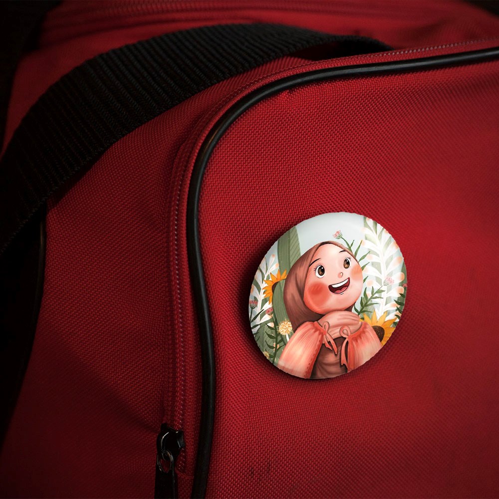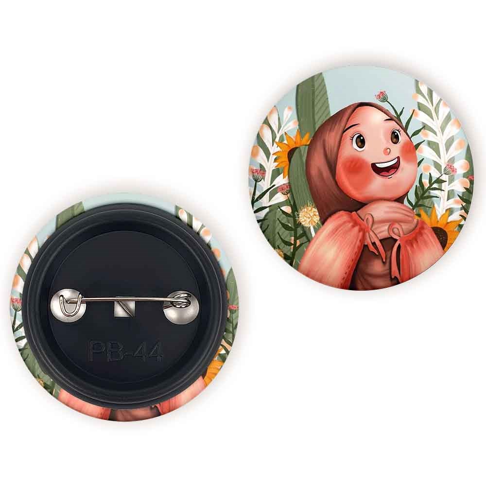 پیکسل 44 میلی متری دخترانه باحجاب خندالو با روکش سلفون حرارتی مات مخملی ضدخش و قطعه پشتی رنگی تولید شده است.پلاستیکی پشت پیکسل با سوزن یک تکه ثابت و بدون لغزش و جا به جایی، ایستایی بسیار بهتری نسبت به پشتی فلزی پیکسل دارند که این مهم در تولید این محصول نیز رعایت شده است.