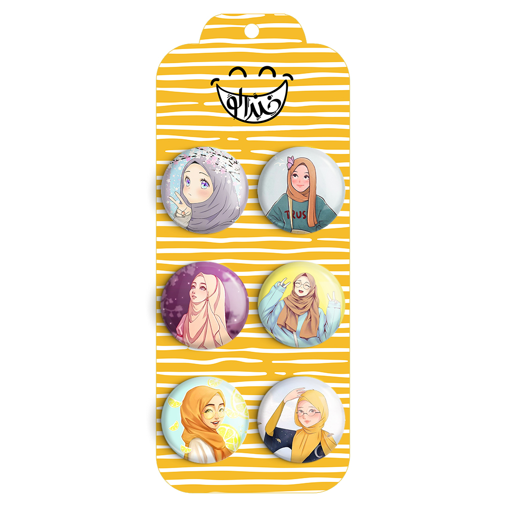 مجموعه 6 عددی پیکسل خندالو طرح دخترانه باحجاب با روکش سلفون حرارتی براق ضدخش و قطعه پشتی رنگی تولید شده است. قطعات پشتی از میان 6 رنگ سفید، مشکی، صورتی، زرد، آبی و قرمز که با توجه به نوع و رنگبندی طرح روی پیکسل انتخاب شده اند تولید می شود و در هر بسته بندی مطابق عکس محصول می باشد.