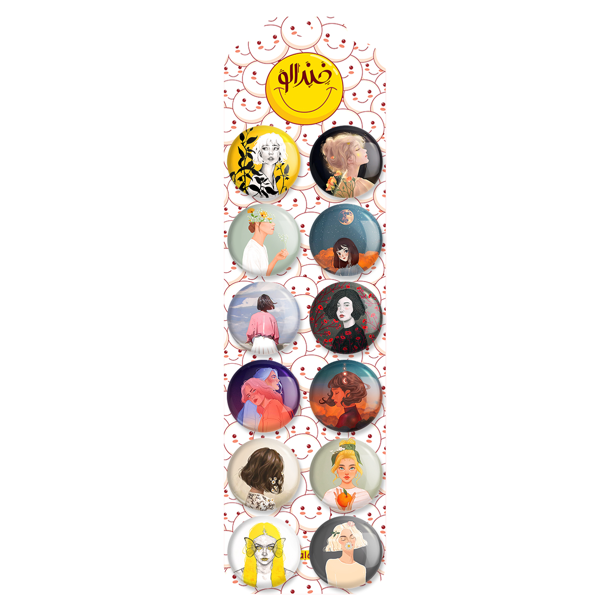 پک 12 عددی پیکسل خندالو طرح دخترانه با روکش سلفون حرارتی براق ضدخش و قطعه پشتی رنگی تولید شده است. قطعات پشتی از میان 6 رنگ سفید، مشکی، صورتی، زرد، آبی و قرمز که با توجه به نوع و رنگبندی طرح روی پیکسل انتخاب شده اند تولید می شود و در هر بسته بندی مطابق عکس محصول می باشد. قطعات پلاستیکی پشت پیکسل با سوزن یک تکه ثابت و بدون لغزش و جا به جایی، ایستایی بسیار بهتری نسبت به پشتی فلزی پیکسل دارند که این مهم در تولید این محصول نیز رعایت شده است. چاپ پیکسل طرح دخترانه بسته ۱۲ عددی نیز با دستگاه های استاندارد و با بهترین سطح کیفی صورت گرفته و طرح با شفافیتی مثال زدنی و با سلفونی بدون شکست نور بر روی پیکسل نقش بسته است.