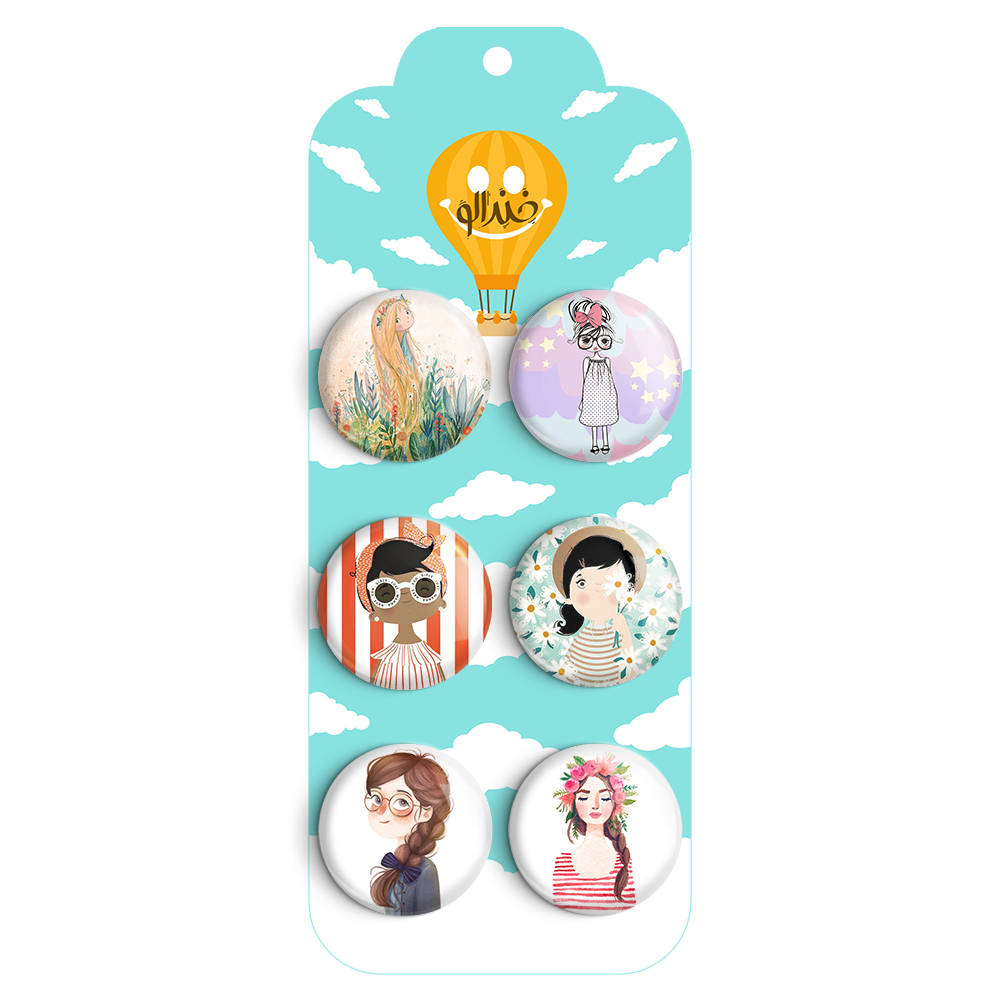 مجموعه 6 عددی پیکسل خندالو طرح دخترانه (Girlish) با روکش سلفون حرارتی براق ضدخش و قطعه پشتی رنگی تولید شده است. قطعات پشتی از میان 6 رنگ سفید، مشکی، صورتی، زرد، آبی و قرمز که با توجه به نوع و رنگبندی طرح روی پیکسل انتخاب شده اند تولید می شود و در هر بسته بندی مطابق عکس محصول می باشد.