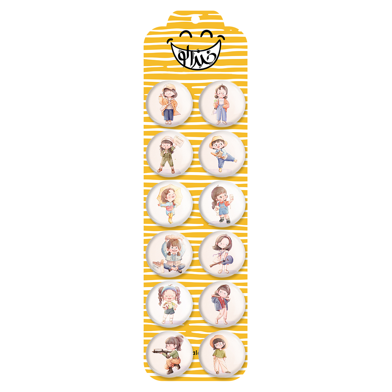 پک 12 عددی پیکسل خندالو طرح دخترونه با روکش سلفون حرارتی براق ضدخش و قطعه پشتی رنگی تولید شده است. قطعات پشتی از میان 6 رنگ سفید، مشکی، صورتی، زرد، آبی و قرمز که با توجه به نوع و رنگبندی طرح روی پیکسل انتخاب شده اند تولید می شود و در هر بسته بندی مطابق عکس محصول می باشد. قطعات پلاستیکی پشت پیکسل با سوزن یک تکه ثابت و بدون لغزش و جا به جایی، ایستایی بسیار بهتری نسبت به پشتی فلزی پیکسل دارند که این مهم در تولید این محصول نیز رعایت شده است. چاپ پیکسل طرح دخترونه بسته ۱۲ عددی نیز با دستگاه های استاندارد و با بهترین سطح کیفی صورت گرفته و طرح با شفافیتی مثال زدنی و با سلفونی بدون شکست نور بر روی پیکسل نقش بسته است.