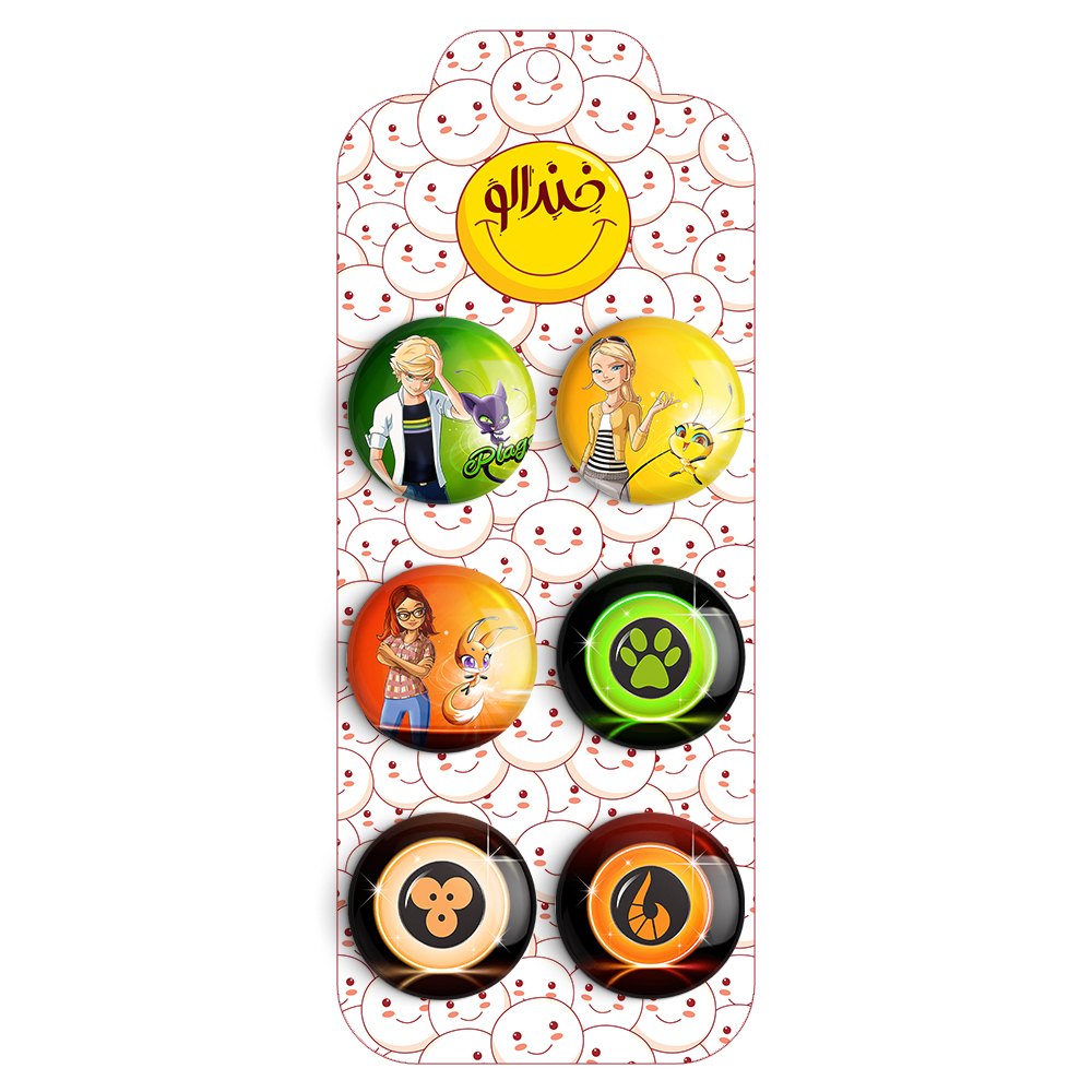 مجموعه 6 عددی پیکسل خندالو طرح دخترکفشدوزکی با روکش سلفون حرارتی براق ضدخش و قطعه پشتی رنگی تولید شده است. قطعات پشتی از میان 6 رنگ سفید، مشکی، صورتی، زرد، آبی و قرمز که با توجه به نوع و رنگبندی طرح روی پیکسل انتخاب شده اند تولید می شود و در هر بسته بندی مطابق عکس محصول می باشد.