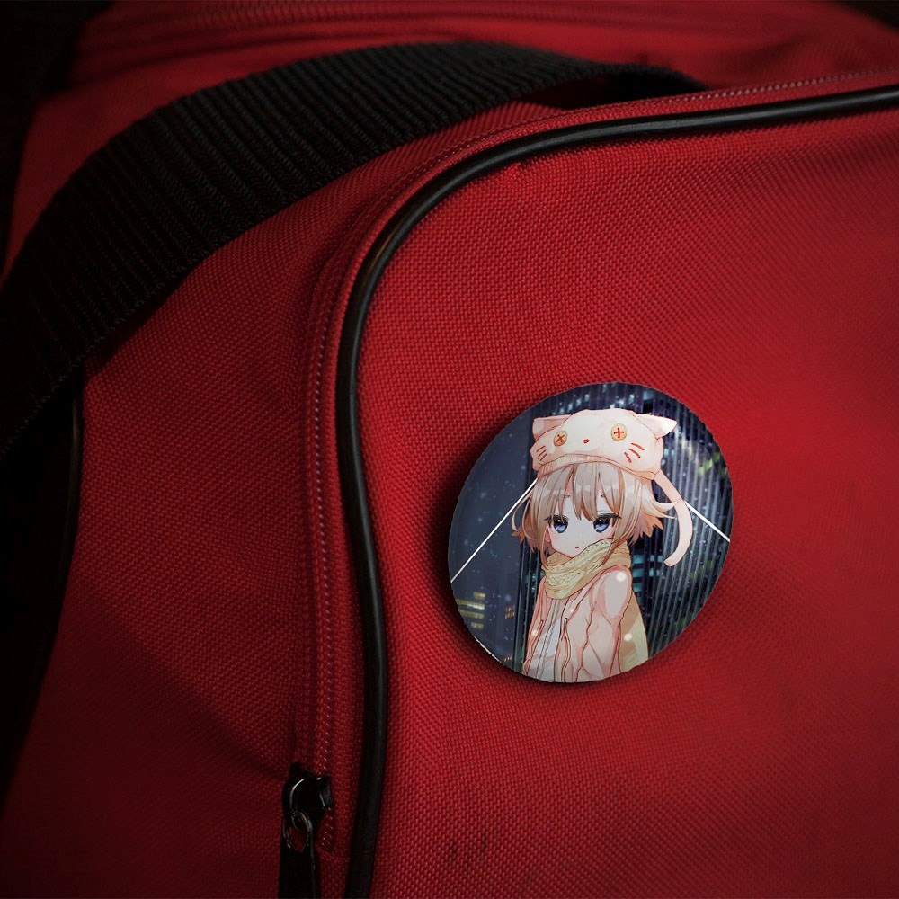 پیکسل 44 میلی متری دختر انیمه ای خندالو با روکش سلفون حرارتی مات مخملی ضدخش و قطعه پشتی رنگی تولید شده است.پلاستیکی پشت پیکسل با سوزن یک تکه ثابت و بدون لغزش و جا به جایی، ایستایی بسیار بهتری نسبت به پشتی فلزی پیکسل دارند که این مهم در تولید این محصول نیز رعایت شده است.