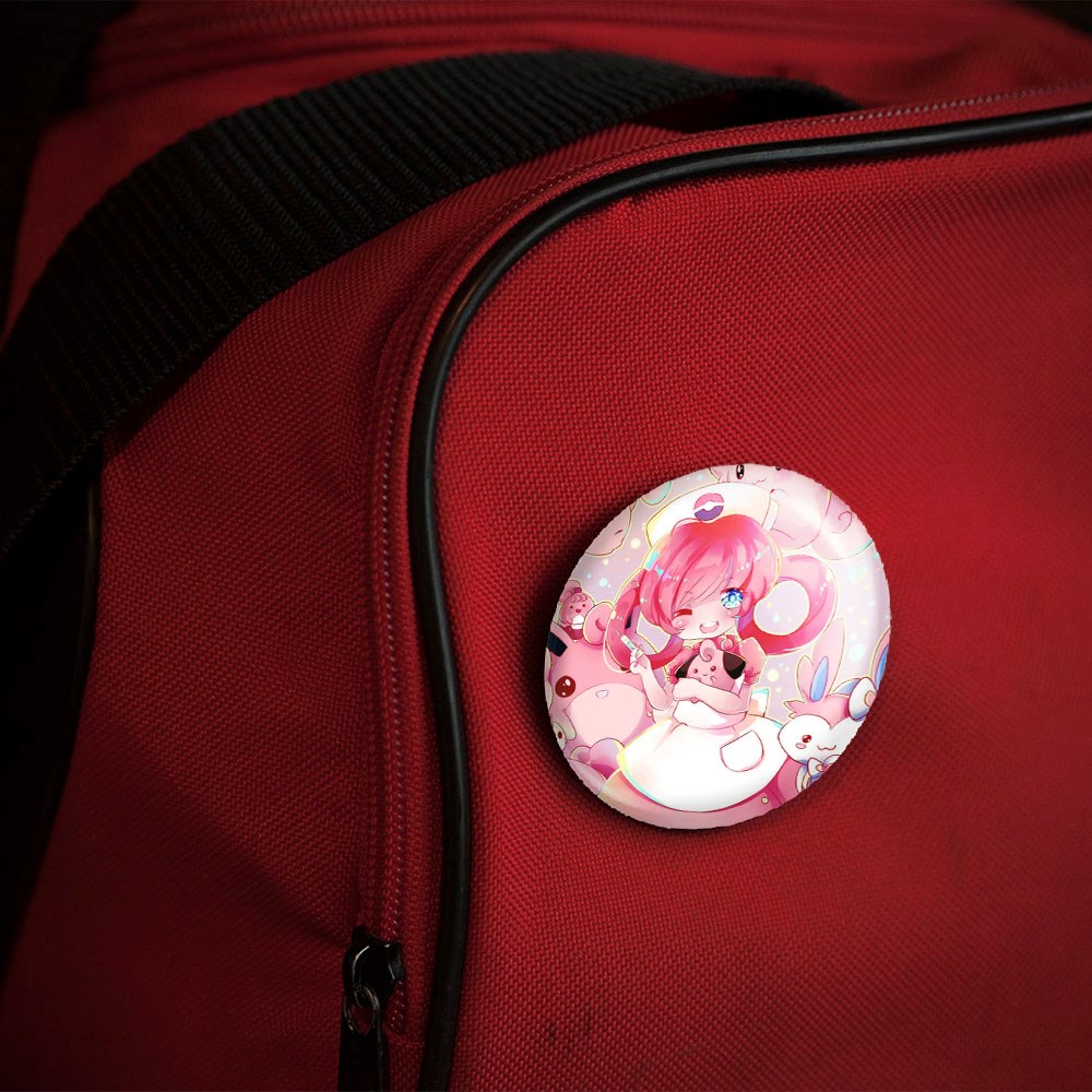 پیکسل 44 میلی متری دختر انیمه ای خندالو با روکش سلفون حرارتی مات مخملی ضدخش و قطعه پشتی رنگی تولید شده است.پلاستیکی پشت پیکسل با سوزن یک تکه ثابت و بدون لغزش و جا به جایی، ایستایی بسیار بهتری نسبت به پشتی فلزی پیکسل دارند که این مهم در تولید این محصول نیز رعایت شده است.