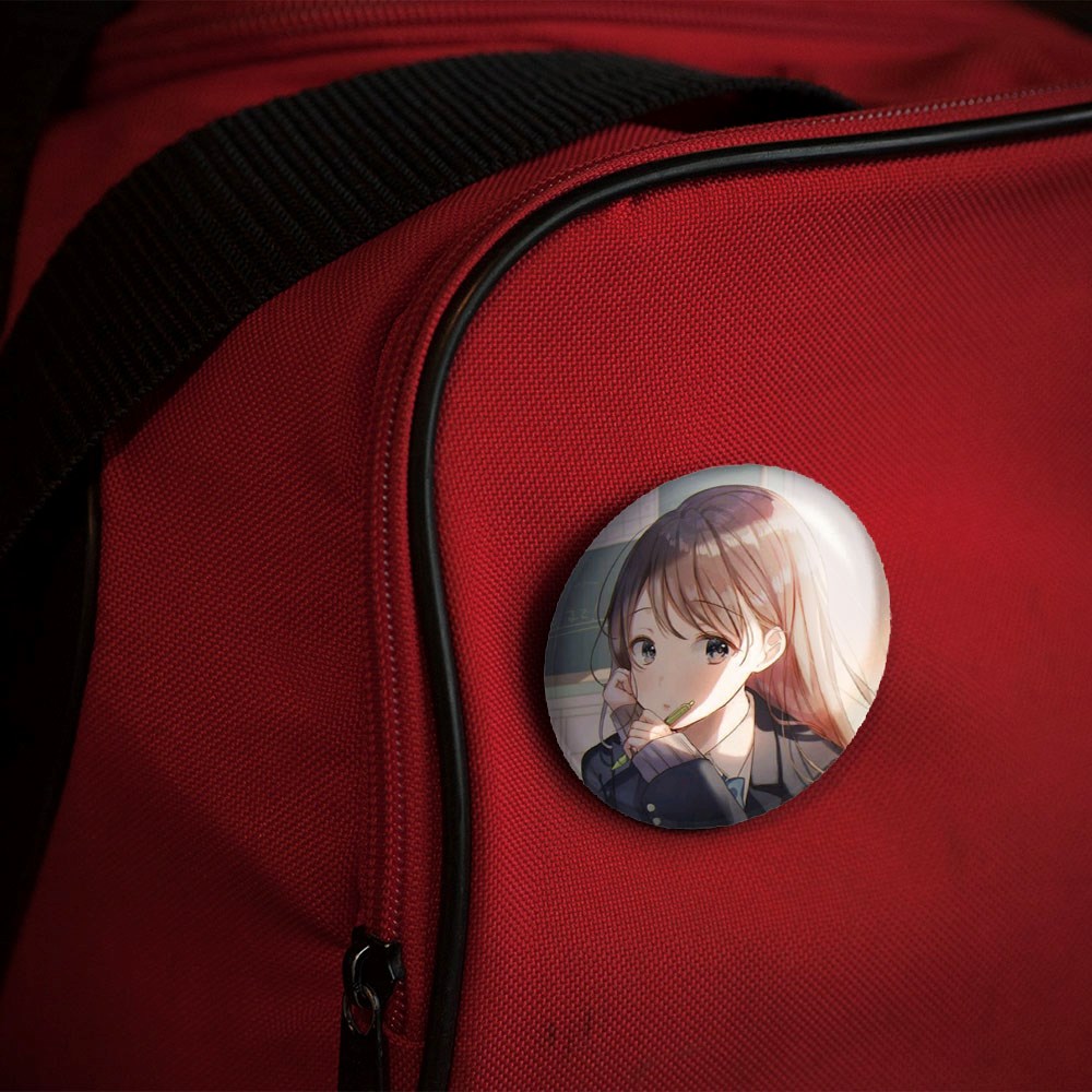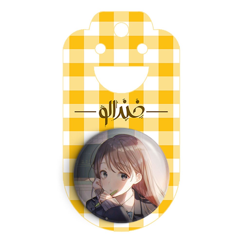 پیکسل 44 میلی متری دختر انیمه ای خندالو با روکش سلفون حرارتی مات مخملی ضدخش و قطعه پشتی رنگی تولید شده است.پلاستیکی پشت پیکسل با سوزن یک تکه ثابت و بدون لغزش و جا به جایی، ایستایی بسیار بهتری نسبت به پشتی فلزی پیکسل دارند که این مهم در تولید این محصول نیز رعایت شده است.