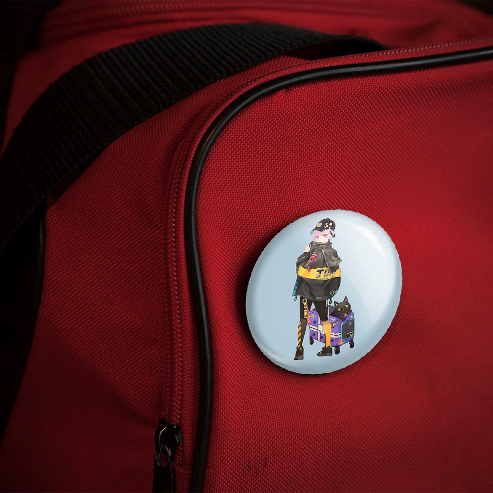 پیکسل 44 میلی متری دختر انیمه ای خندالو با روکش سلفون حرارتی مات مخملی ضدخش و قطعه پشتی رنگی تولید شده است.پلاستیکی پشت پیکسل با سوزن یک تکه ثابت و بدون لغزش و جا به جایی، ایستایی بسیار بهتری نسبت به پشتی فلزی پیکسل دارند که این مهم در تولید این محصول نیز رعایت شده است.
