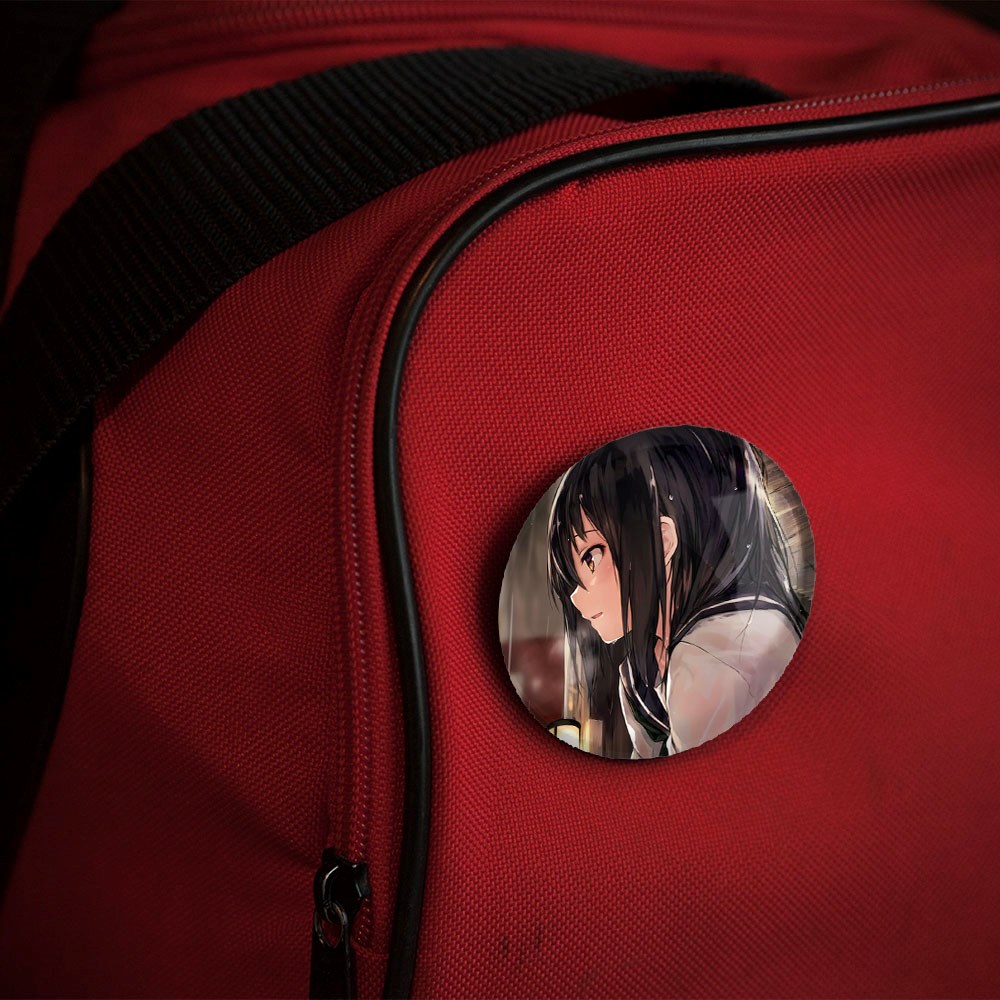 پیکسل 44 میلی متری دختر انیمه ای خندالو با روکش سلفون حرارتی مات مخملی ضدخش و قطعه پشتی رنگی تولید شده است.پلاستیکی پشت پیکسل با سوزن یک تکه ثابت و بدون لغزش و جا به جایی، ایستایی بسیار بهتری نسبت به پشتی فلزی پیکسل دارند که این مهم در تولید این محصول نیز رعایت شده است.