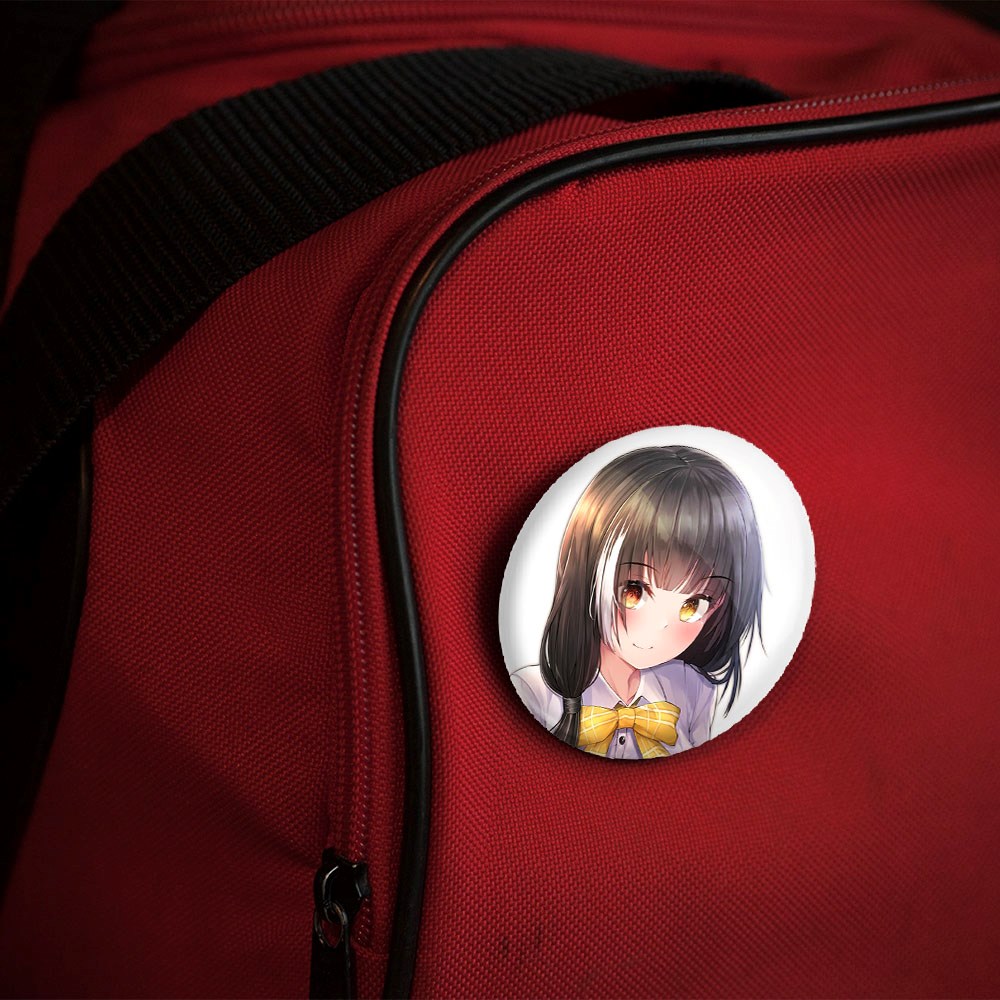 پیکسل 44 میلی متری دختر انیمه ای خندالو با روکش سلفون حرارتی مات مخملی ضدخش و قطعه پشتی رنگی تولید شده است.پلاستیکی پشت پیکسل با سوزن یک تکه ثابت و بدون لغزش و جا به جایی، ایستایی بسیار بهتری نسبت به پشتی فلزی پیکسل دارند که این مهم در تولید این محصول نیز رعایت شده است.