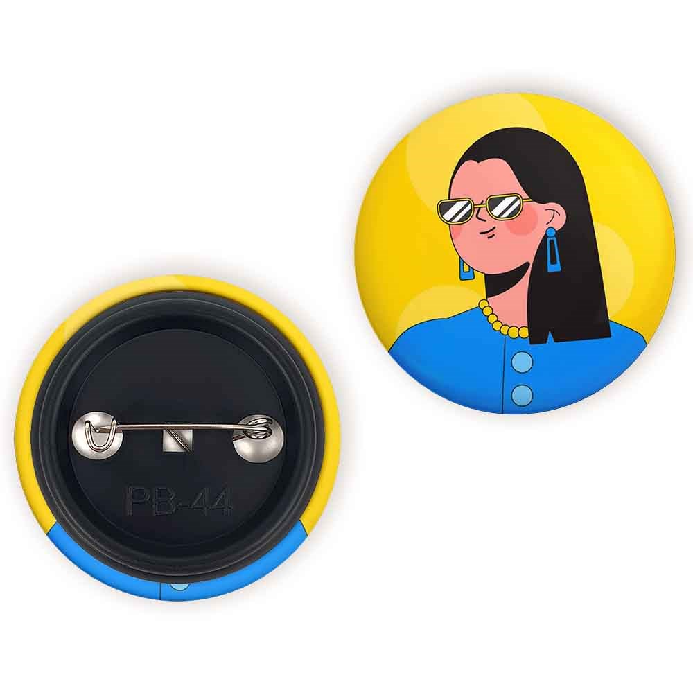 پیکسل 44 میلی متری دختر قوی Girl Power خندالو با روکش سلفون حرارتی مات مخملی ضدخش و قطعه پشتی رنگی تولید شده است.پلاستیکی پشت پیکسل با سوزن یک تکه ثابت و بدون لغزش و جا به جایی، ایستایی بسیار بهتری نسبت به پشتی فلزی پیکسل دارند که این مهم در تولید این محصول نیز رعایت شده است.