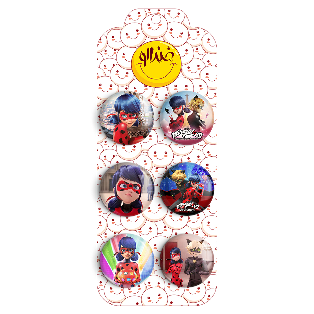 مجموعه 6 عددی پیکسل خندالو طرح دختر کفشدوزکی ( Ladybug Girl) با روکش سلفون حرارتی براق ضدخش و قطعه پشتی رنگی تولید شده است. قطعات پشتی از میان 6 رنگ سفید، مشکی، صورتی، زرد، آبی و قرمز که با توجه به نوع و رنگبندی طرح روی پیکسل انتخاب شده اند تولید می شود و در هر بسته بندی مطابق عکس محصول می باشد.