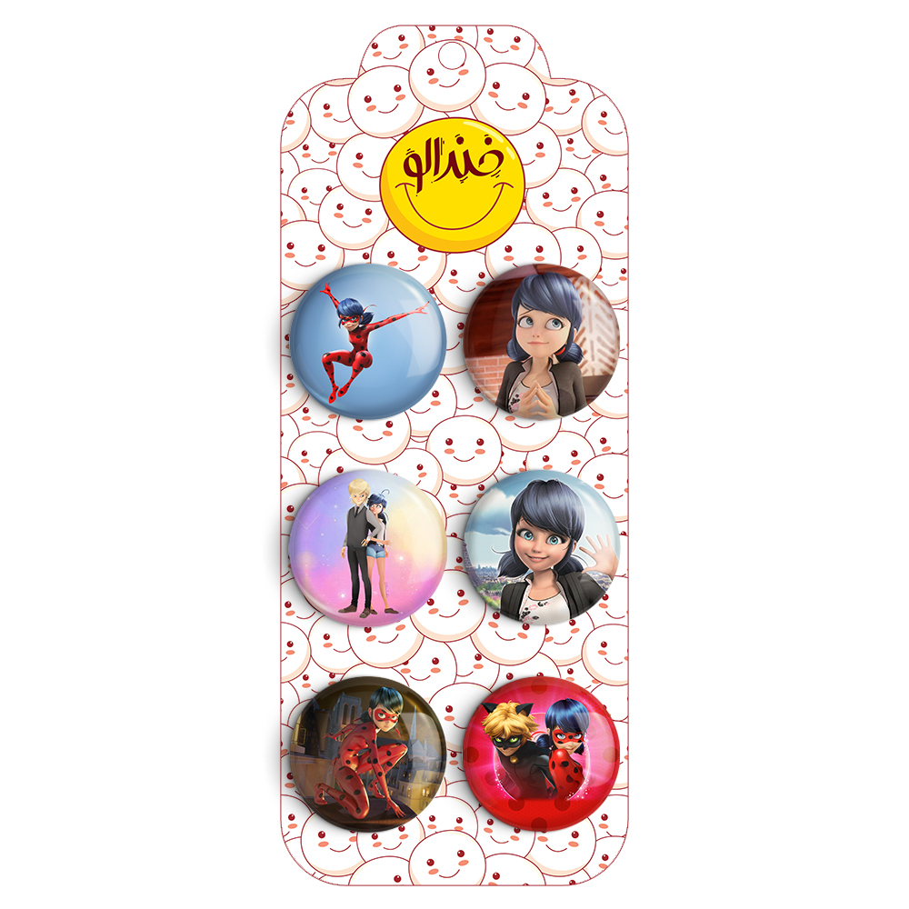 مجموعه 6 عددی پیکسل خندالو طرح دختر کفشدوزکی ( Ladybug Girl) با روکش سلفون حرارتی براق ضدخش و قطعه پشتی رنگی تولید شده است. قطعات پشتی از میان 6 رنگ سفید، مشکی، صورتی، زرد، آبی و قرمز که با توجه به نوع و رنگبندی طرح روی پیکسل انتخاب شده اند تولید می شود و در هر بسته بندی مطابق عکس محصول می باشد.