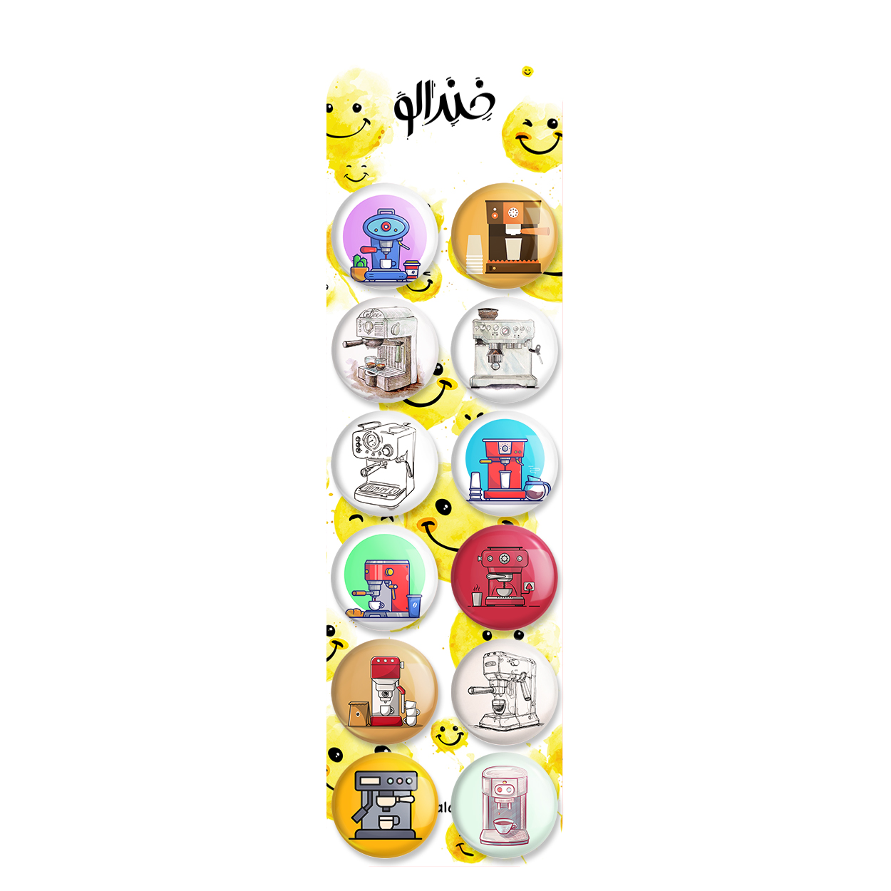 پک 12 عددی پیکسل خندالو طرح دستگاه اسپرسو ساز با روکش سلفون حرارتی براق ضدخش و قطعه پشتی رنگی تولید شده است. قطعات پشتی از میان 6 رنگ سفید، مشکی، صورتی، زرد، آبی و قرمز که با توجه به نوع و رنگبندی طرح روی پیکسل انتخاب شده اند تولید می شود و در هر بسته بندی مطابق عکس محصول می باشد. قطعات پلاستیکی پشت پیکسل با سوزن یک تکه ثابت و بدون لغزش و جا به جایی، ایستایی بسیار بهتری نسبت به پشتی فلزی پیکسل دارند که این مهم در تولید این محصول نیز رعایت شده است. چاپ پیکسل طرح دستگاه اسپرسو ساز بسته ۱۲ عددی نیز با دستگاه های استاندارد و با بهترین سطح کیفی صورت گرفته و طرح با شفافیتی مثال زدنی و با سلفونی بدون شکست نور بر روی پیکسل نقش بسته است.