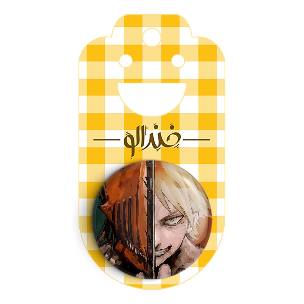 پیکسل 44 میلی متری دنجی انیمه مرد اره ای Chainsaw Man خندالو با روکش سلفون حرارتی مات مخملی ضدخش و قطعه پشتی رنگی تولید شده است.پلاستیکی پشت پیکسل با سوزن یک تکه ثابت و بدون لغزش و جا به جایی، ایستایی بسیار بهتری نسبت به پشتی فلزی پیکسل دارند که این مهم در تولید این محصول نیز رعایت شده است.