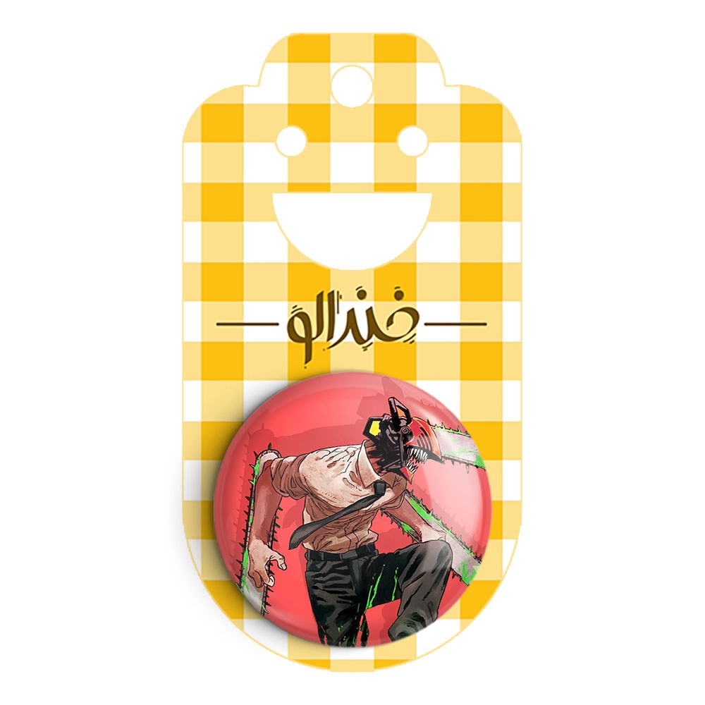 پیکسل 44 میلی متری دنجی انیمه مرد اره ای Chainsaw Man خندالو با روکش سلفون حرارتی مات مخملی ضدخش و قطعه پشتی رنگی تولید شده است.پلاستیکی پشت پیکسل با سوزن یک تکه ثابت و بدون لغزش و جا به جایی، ایستایی بسیار بهتری نسبت به پشتی فلزی پیکسل دارند که این مهم در تولید این محصول نیز رعایت شده است.