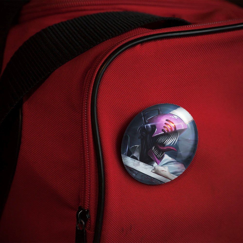 پیکسل 44 میلی متری دنجی انیمه مرد اره ای Chainsaw Man خندالو با روکش سلفون حرارتی مات مخملی ضدخش و قطعه پشتی رنگی تولید شده است.پلاستیکی پشت پیکسل با سوزن یک تکه ثابت و بدون لغزش و جا به جایی، ایستایی بسیار بهتری نسبت به پشتی فلزی پیکسل دارند که این مهم در تولید این محصول نیز رعایت شده است.