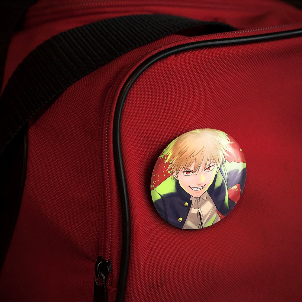 پیکسل 44 میلی متری دنجی انیمه مرد اره ای Chainsaw Man خندالو با روکش سلفون حرارتی مات مخملی ضدخش و قطعه پشتی رنگی تولید شده است.پلاستیکی پشت پیکسل با سوزن یک تکه ثابت و بدون لغزش و جا به جایی، ایستایی بسیار بهتری نسبت به پشتی فلزی پیکسل دارند که این مهم در تولید این محصول نیز رعایت شده است.