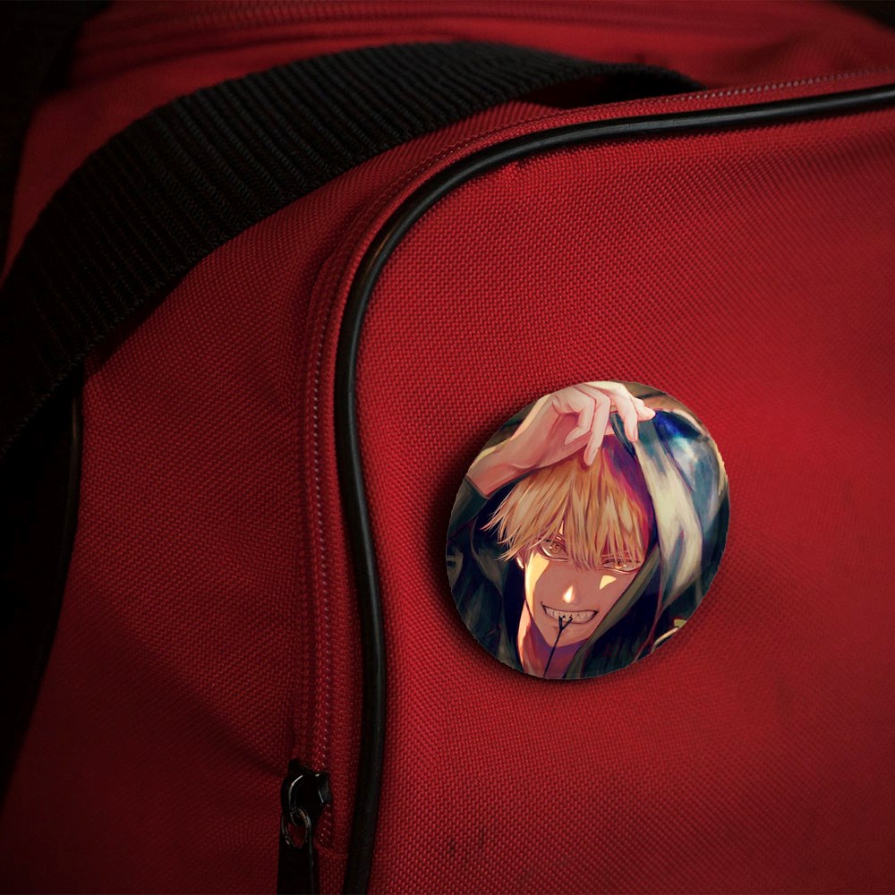 پیکسل 44 میلی متری دنجی انیمه مرد اره ای Chainsaw Man خندالو با روکش سلفون حرارتی مات مخملی ضدخش و قطعه پشتی رنگی تولید شده است.پلاستیکی پشت پیکسل با سوزن یک تکه ثابت و بدون لغزش و جا به جایی، ایستایی بسیار بهتری نسبت به پشتی فلزی پیکسل دارند که این مهم در تولید این محصول نیز رعایت شده است.