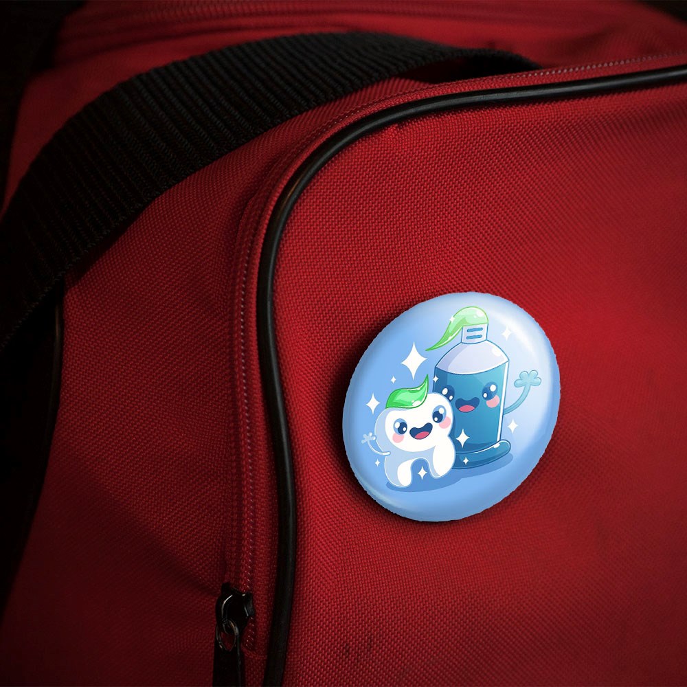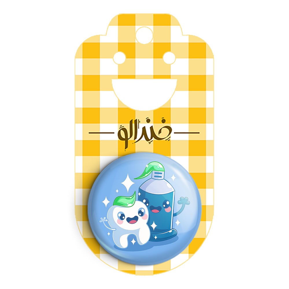 پیکسل 44 میلی متری دندان و دندانپزشکی کودکانه خندالو با روکش سلفون حرارتی مات مخملی ضدخش و قطعه پشتی رنگی تولید شده است.پلاستیکی پشت پیکسل با سوزن یک تکه ثابت و بدون لغزش و جا به جایی، ایستایی بسیار بهتری نسبت به پشتی فلزی پیکسل دارند که این مهم در تولید این محصول نیز رعایت شده است.