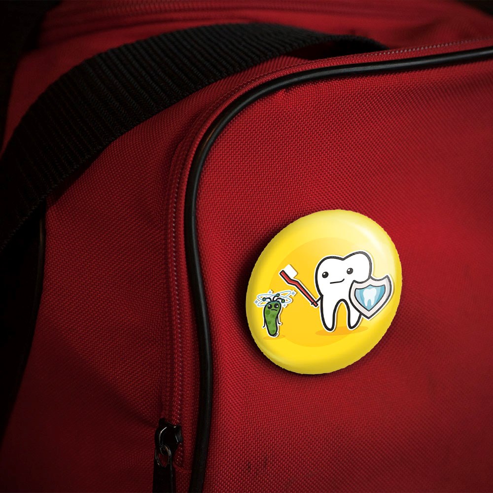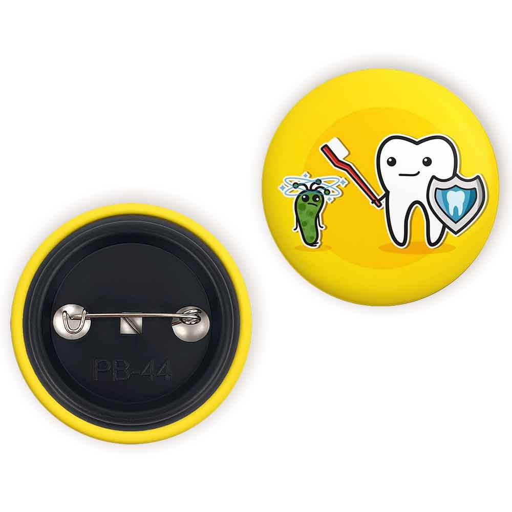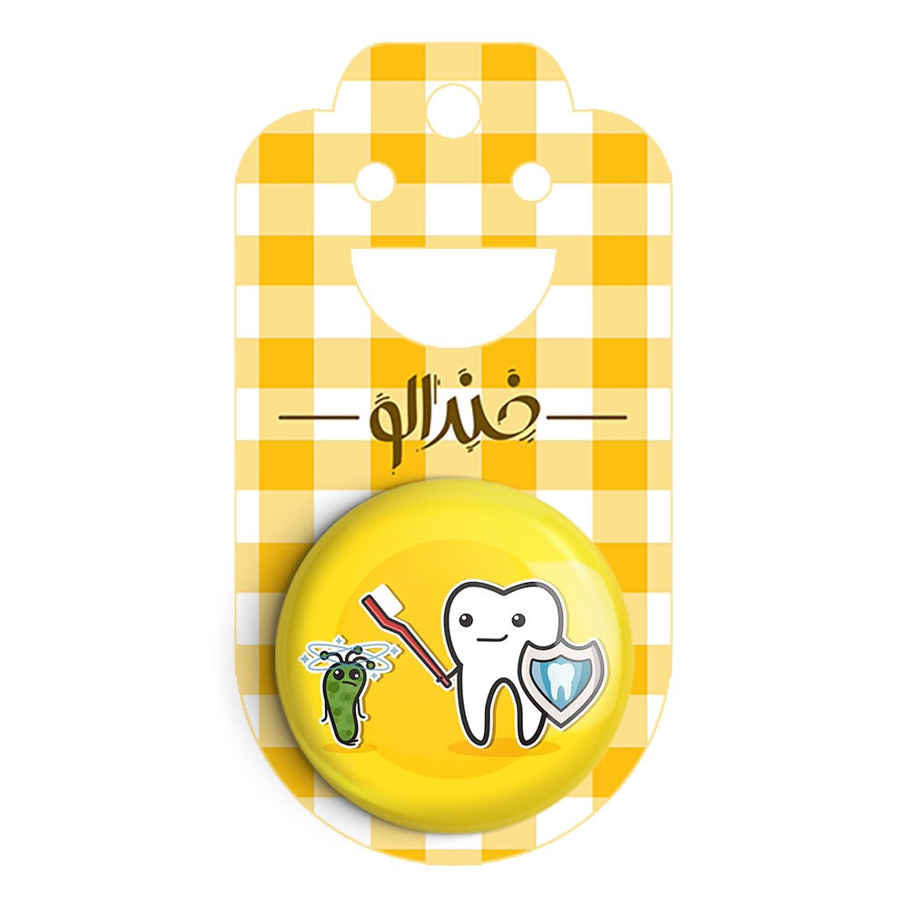 پیکسل 44 میلی متری دندان و دندانپزشکی کودکانه خندالو با روکش سلفون حرارتی مات مخملی ضدخش و قطعه پشتی رنگی تولید شده است.پلاستیکی پشت پیکسل با سوزن یک تکه ثابت و بدون لغزش و جا به جایی، ایستایی بسیار بهتری نسبت به پشتی فلزی پیکسل دارند که این مهم در تولید این محصول نیز رعایت شده است.