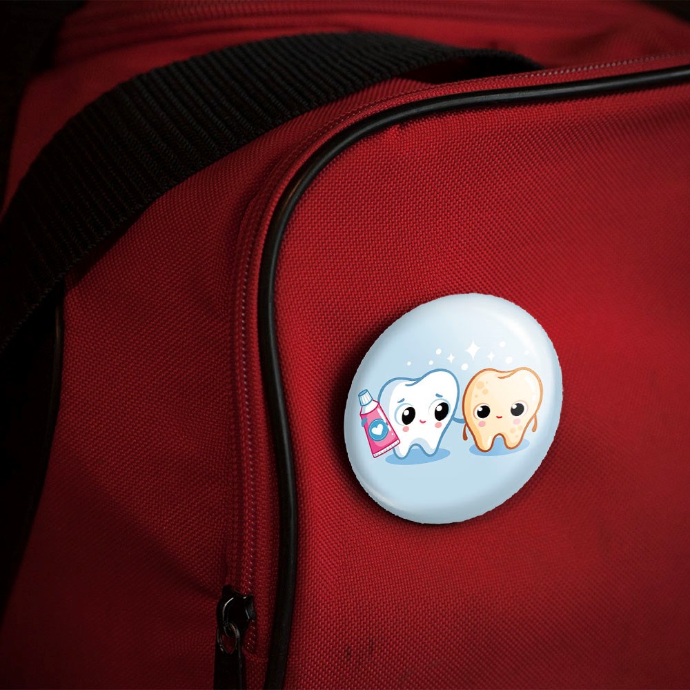 پیکسل 44 میلی متری دندان و دندانپزشکی کودکانه خندالو با روکش سلفون حرارتی مات مخملی ضدخش و قطعه پشتی رنگی تولید شده است.پلاستیکی پشت پیکسل با سوزن یک تکه ثابت و بدون لغزش و جا به جایی، ایستایی بسیار بهتری نسبت به پشتی فلزی پیکسل دارند که این مهم در تولید این محصول نیز رعایت شده است.