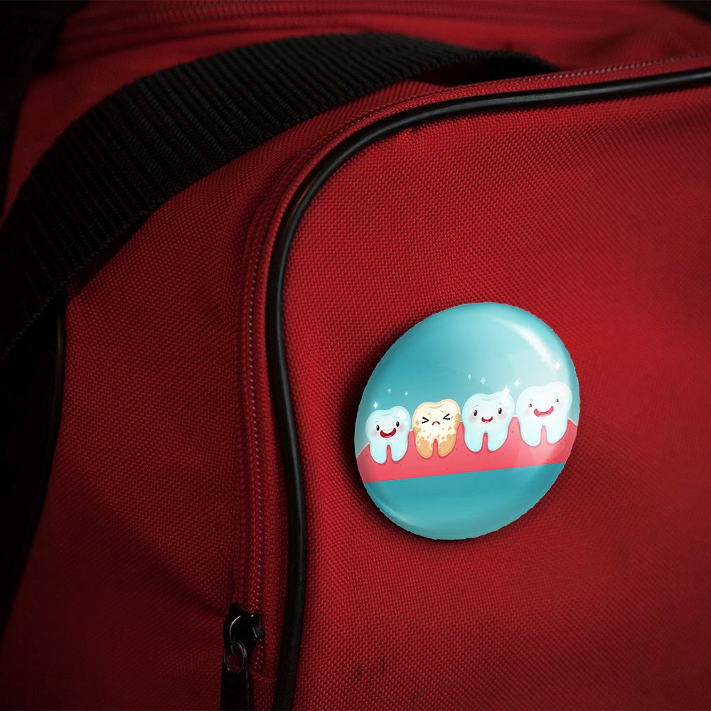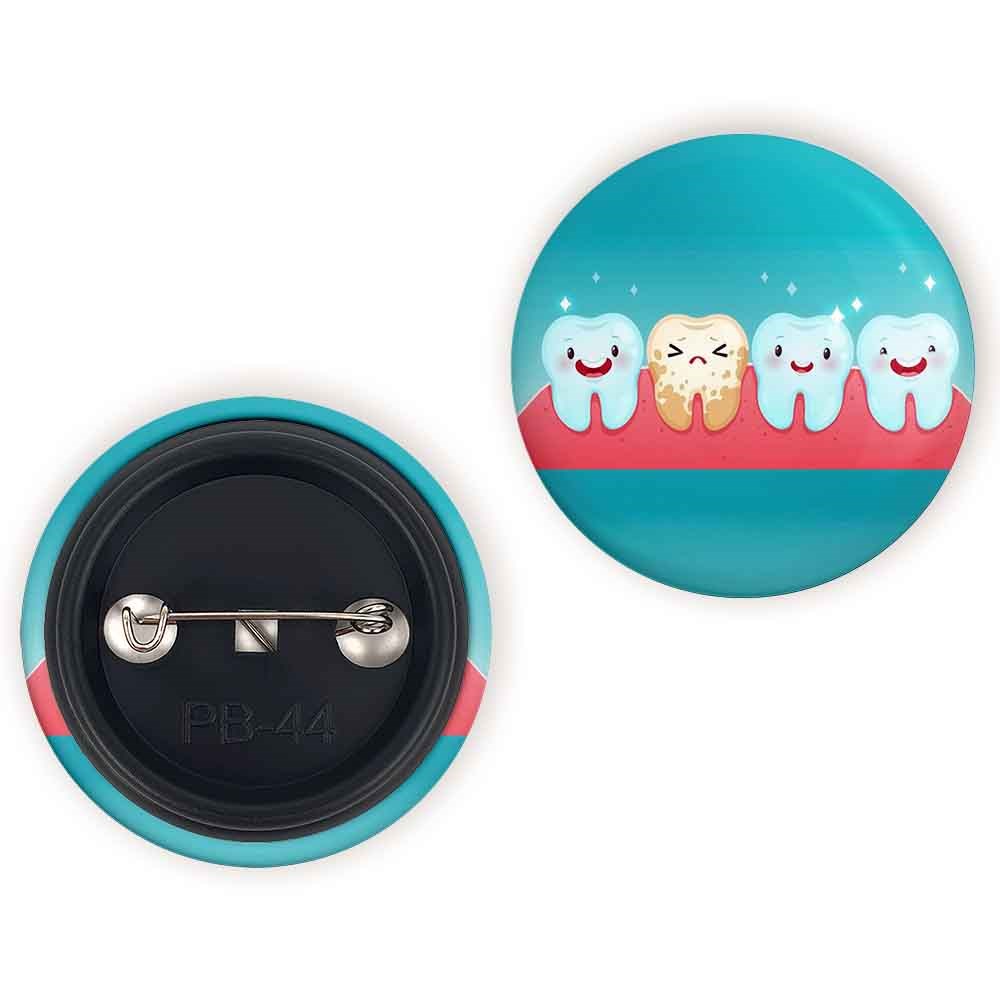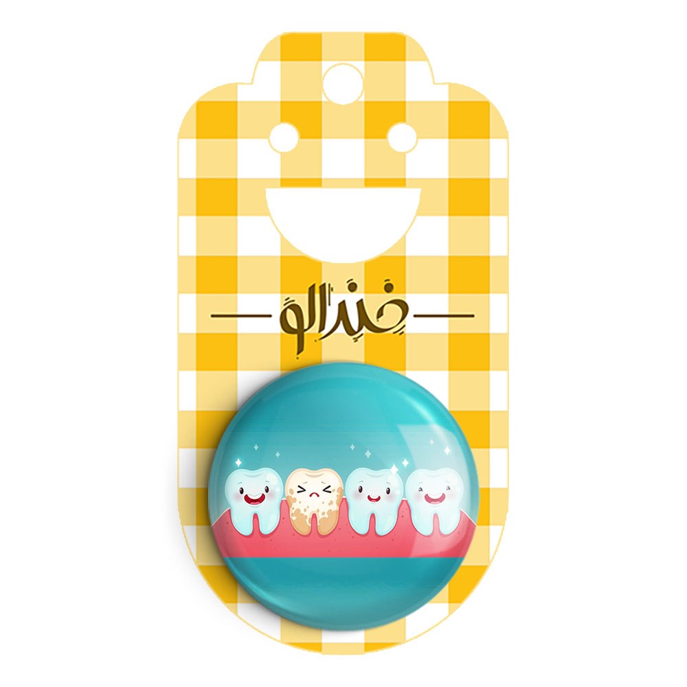 پیکسل 44 میلی متری دندان و دندانپزشکی کودکانه خندالو با روکش سلفون حرارتی مات مخملی ضدخش و قطعه پشتی رنگی تولید شده است.پلاستیکی پشت پیکسل با سوزن یک تکه ثابت و بدون لغزش و جا به جایی، ایستایی بسیار بهتری نسبت به پشتی فلزی پیکسل دارند که این مهم در تولید این محصول نیز رعایت شده است.