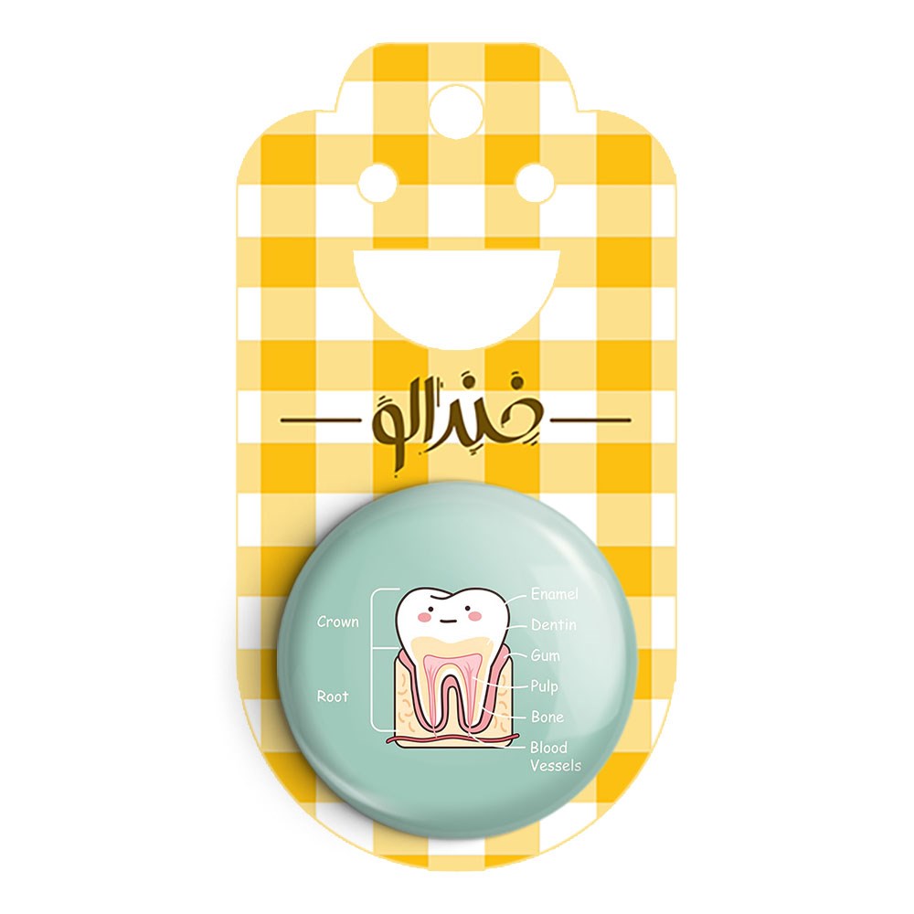 پیکسل 44 میلی متری دندان و دندانپزشکی کودکانه خندالو با روکش سلفون حرارتی مات مخملی ضدخش و قطعه پشتی رنگی تولید شده است.پلاستیکی پشت پیکسل با سوزن یک تکه ثابت و بدون لغزش و جا به جایی، ایستایی بسیار بهتری نسبت به پشتی فلزی پیکسل دارند که این مهم در تولید این محصول نیز رعایت شده است.