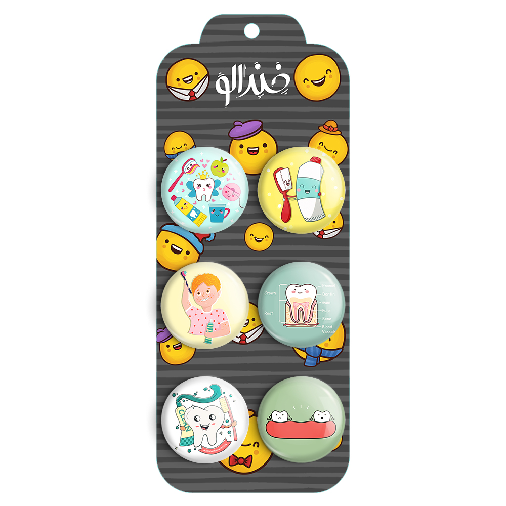 مجموعه 6 عددی پیکسل خندالو طرح دندان و دندان پزشکی کودکانه با روکش سلفون حرارتی براق ضدخش و قطعه پشتی رنگی تولید شده است. قطعات پشتی از میان 6 رنگ سفید، مشکی، صورتی، زرد، آبی و قرمز که با توجه به نوع و رنگبندی طرح روی پیکسل انتخاب شده اند تولید می شود و در هر بسته بندی مطابق عکس محصول می باشد.
