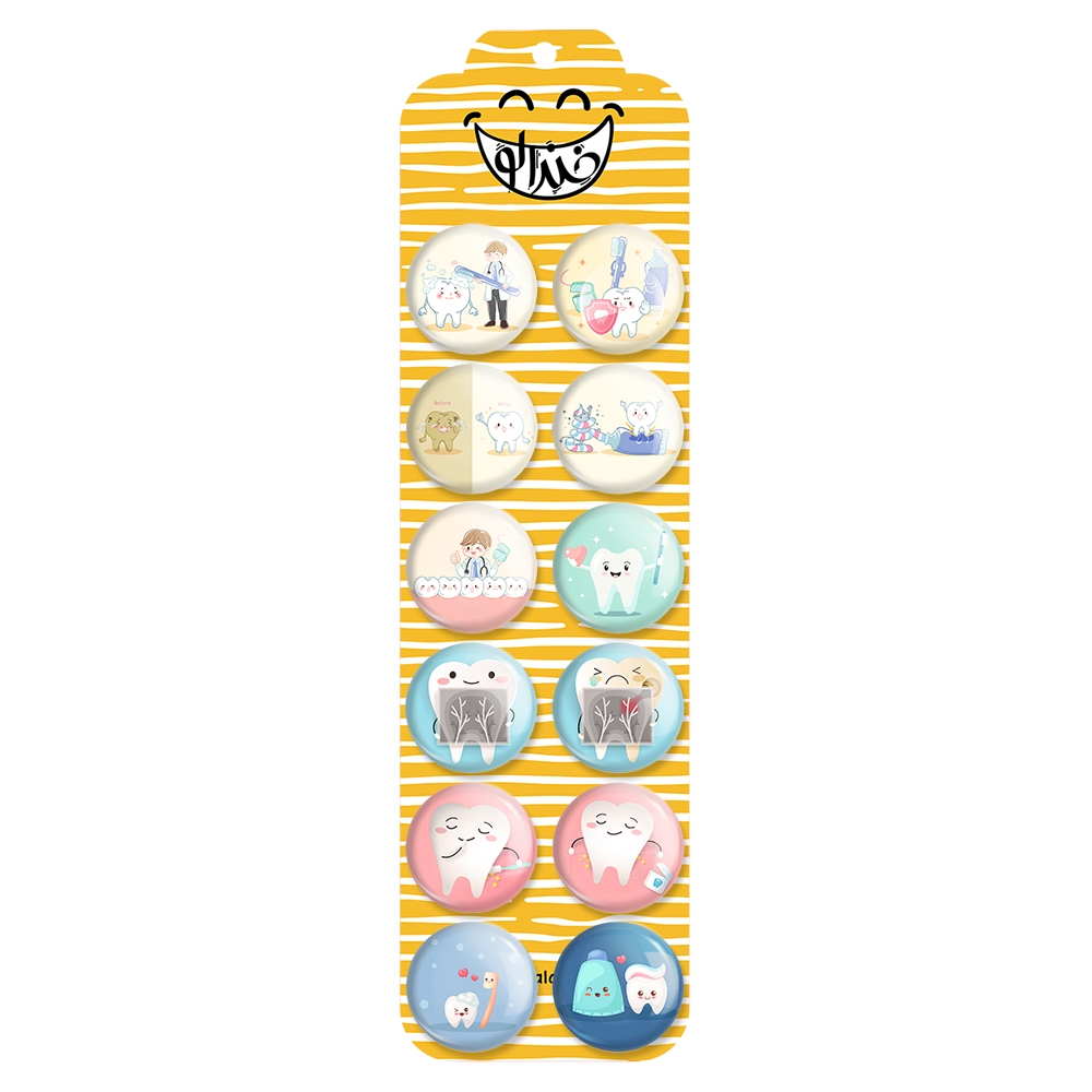 پک 12 عددی پیکسل خندالو طرح دندان و دندان پزشکی کودکانه با روکش سلفون حرارتی براق ضدخش و قطعه پشتی رنگی تولید شده است. قطعات پشتی از میان 6 رنگ سفید، مشکی، صورتی، زرد، آبی و قرمز که با توجه به نوع و رنگبندی طرح روی پیکسل انتخاب شده اند تولید می شود و در هر بسته بندی مطابق عکس محصول می باشد. قطعات پلاستیکی پشت پیکسل با سوزن یک تکه ثابت و بدون لغزش و جا به جایی، ایستایی بسیار بهتری نسبت به پشتی فلزی پیکسل دارند که این مهم در تولید این محصول نیز رعایت شده است.