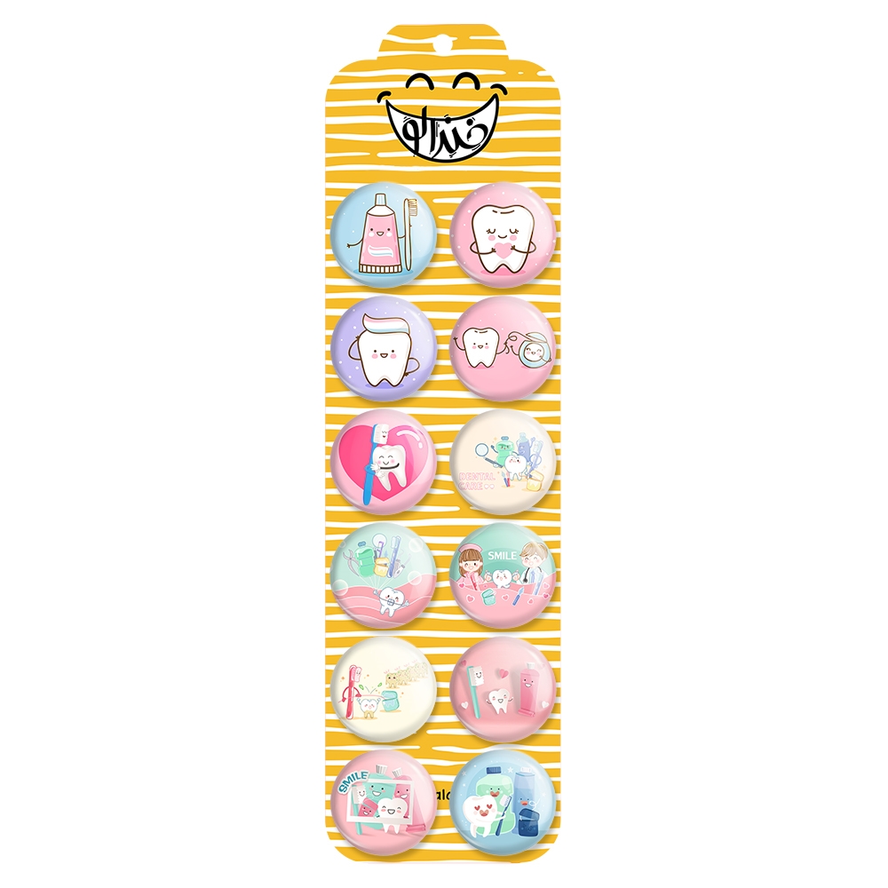 پک 12 عددی پیکسل خندالو طرح دندان و دندان پزشکی کودکانه با روکش سلفون حرارتی براق ضدخش و قطعه پشتی رنگی تولید شده است. قطعات پشتی از میان 6 رنگ سفید، مشکی، صورتی، زرد، آبی و قرمز که با توجه به نوع و رنگبندی طرح روی پیکسل انتخاب شده اند تولید می شود و در هر بسته بندی مطابق عکس محصول می باشد. قطعات پلاستیکی پشت پیکسل با سوزن یک تکه ثابت و بدون لغزش و جا به جایی، ایستایی بسیار بهتری نسبت به پشتی فلزی پیکسل دارند که این مهم در تولید این محصول نیز رعایت شده است.