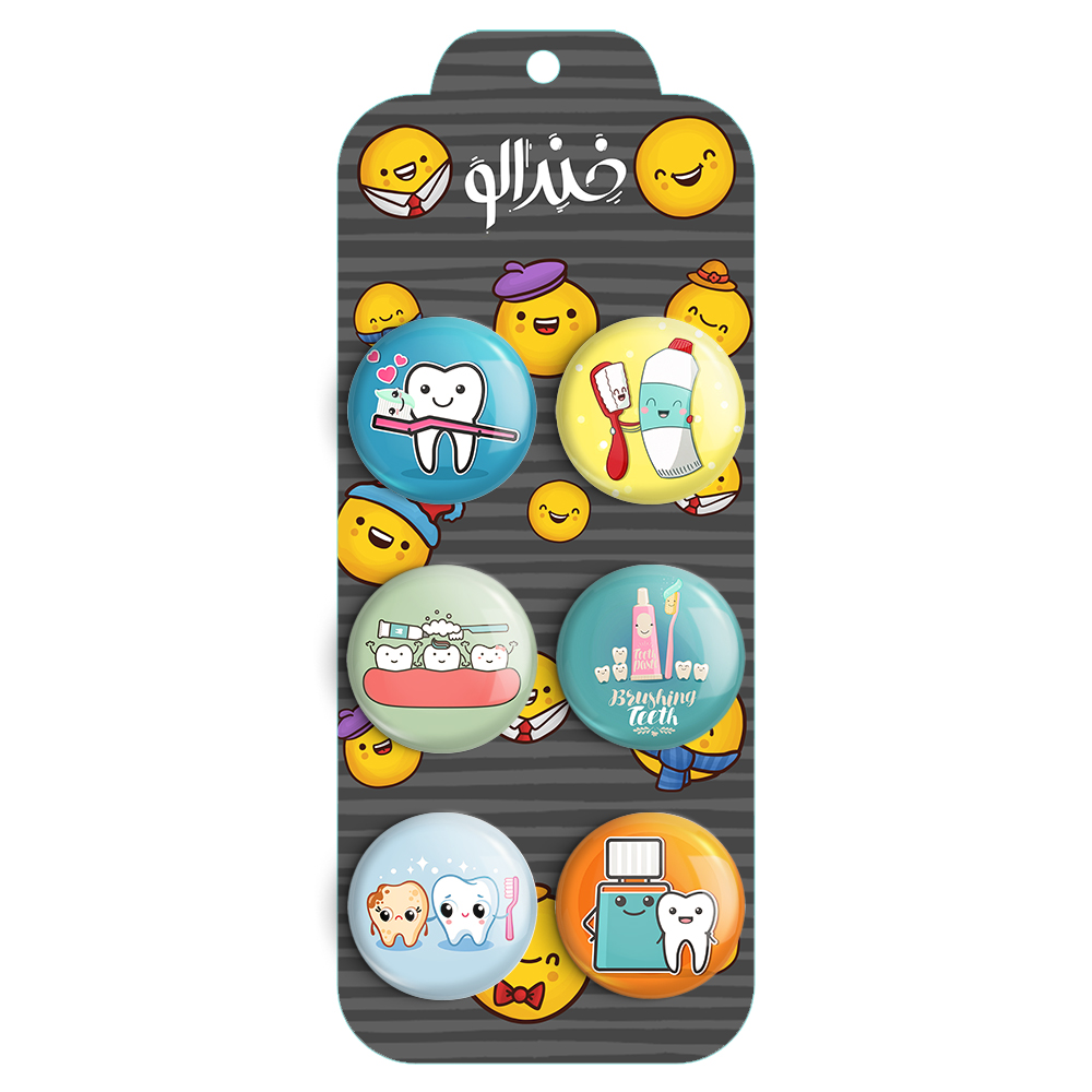 مجموعه 6 عددی پیکسل خندالو طرح دندان و دندان پزشکی کودکانه با روکش سلفون حرارتی براق ضدخش و قطعه پشتی رنگی تولید شده است. قطعات پشتی از میان 6 رنگ سفید، مشکی، صورتی، زرد، آبی و قرمز که با توجه به نوع و رنگبندی طرح روی پیکسل انتخاب شده اند تولید می شود و در هر بسته بندی مطابق عکس محصول می باشد.