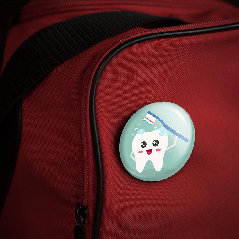 پیکسل 44 میلی متری دندان و دندان پزشکی کودکانهخندالو با روکش سلفون حرارتی مات مخملی ضدخش و قطعه پشتی رنگی تولید شده است. قطعات پلاستیکی پشت پیکسل با سوزن یک تکه ثابت و بدون لغزش و جا به جایی، ایستایی بسیار بهتری نسبت به پشتی فلزی پیکسل دارند که این مهم در تولید این محصول نیز رعایت شده است.