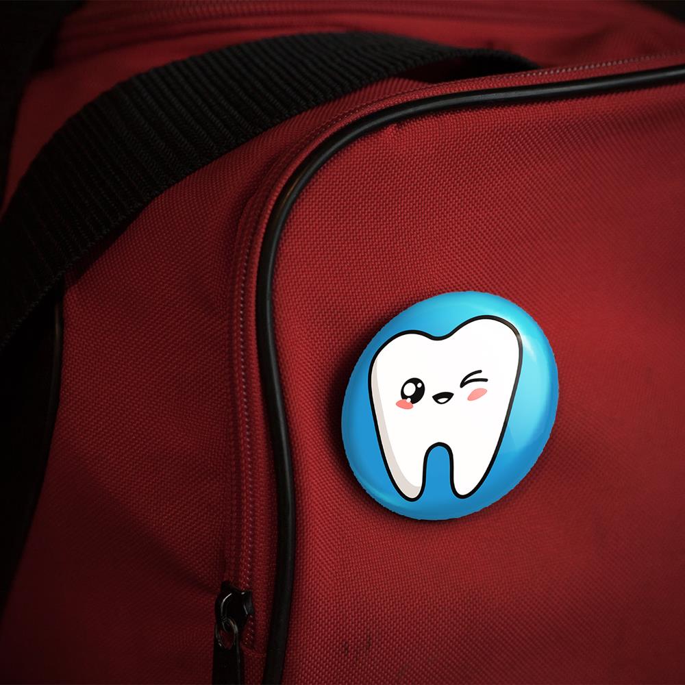 پیکسل 44 میلی متری دندان و دندان پزشکی کودکانهخندالو با روکش سلفون حرارتی مات مخملی ضدخش و قطعه پشتی رنگی تولید شده است. قطعات پلاستیکی پشت پیکسل با سوزن یک تکه ثابت و بدون لغزش و جا به جایی، ایستایی بسیار بهتری نسبت به پشتی فلزی پیکسل دارند که این مهم در تولید این محصول نیز رعایت شده است.