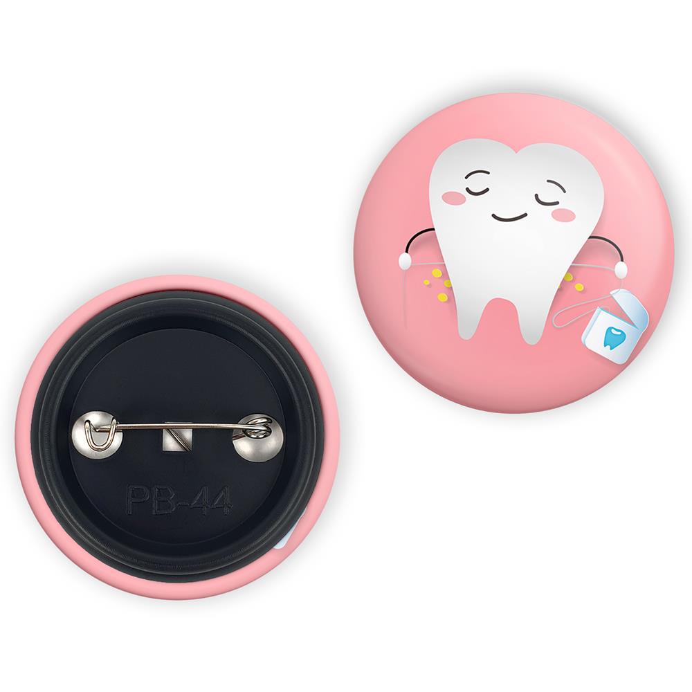 پیکسل 44 میلی متری دندان و دندان پزشکی کودکانهخندالو با روکش سلفون حرارتی مات مخملی ضدخش و قطعه پشتی رنگی تولید شده است. قطعات پلاستیکی پشت پیکسل با سوزن یک تکه ثابت و بدون لغزش و جا به جایی، ایستایی بسیار بهتری نسبت به پشتی فلزی پیکسل دارند که این مهم در تولید این محصول نیز رعایت شده است.