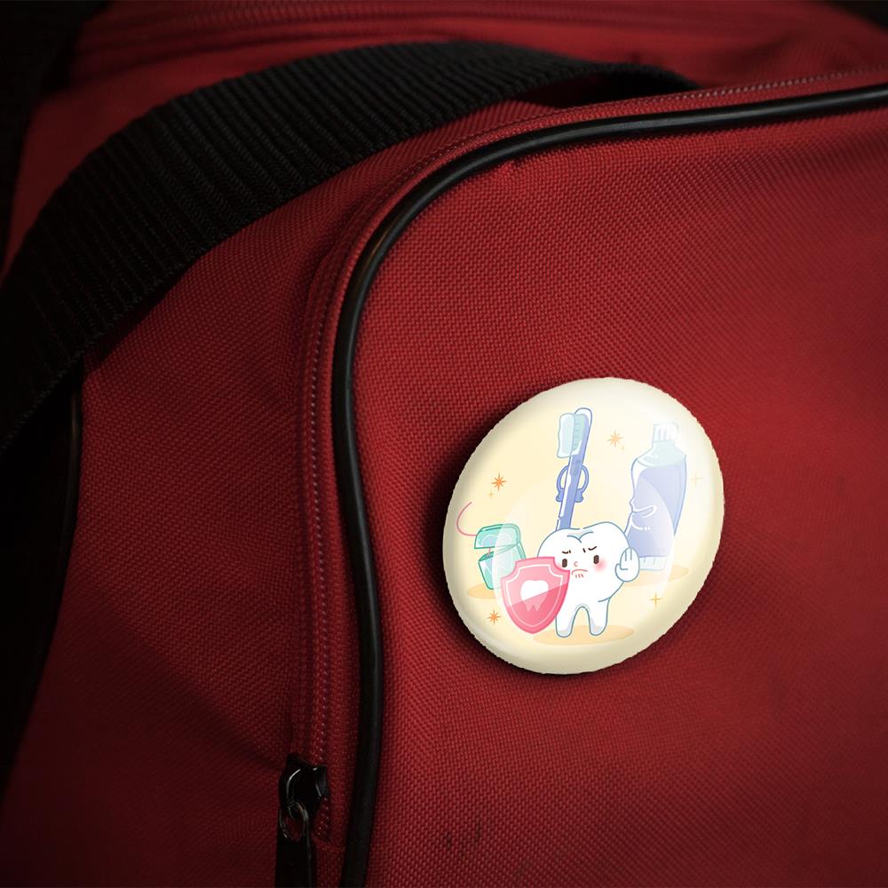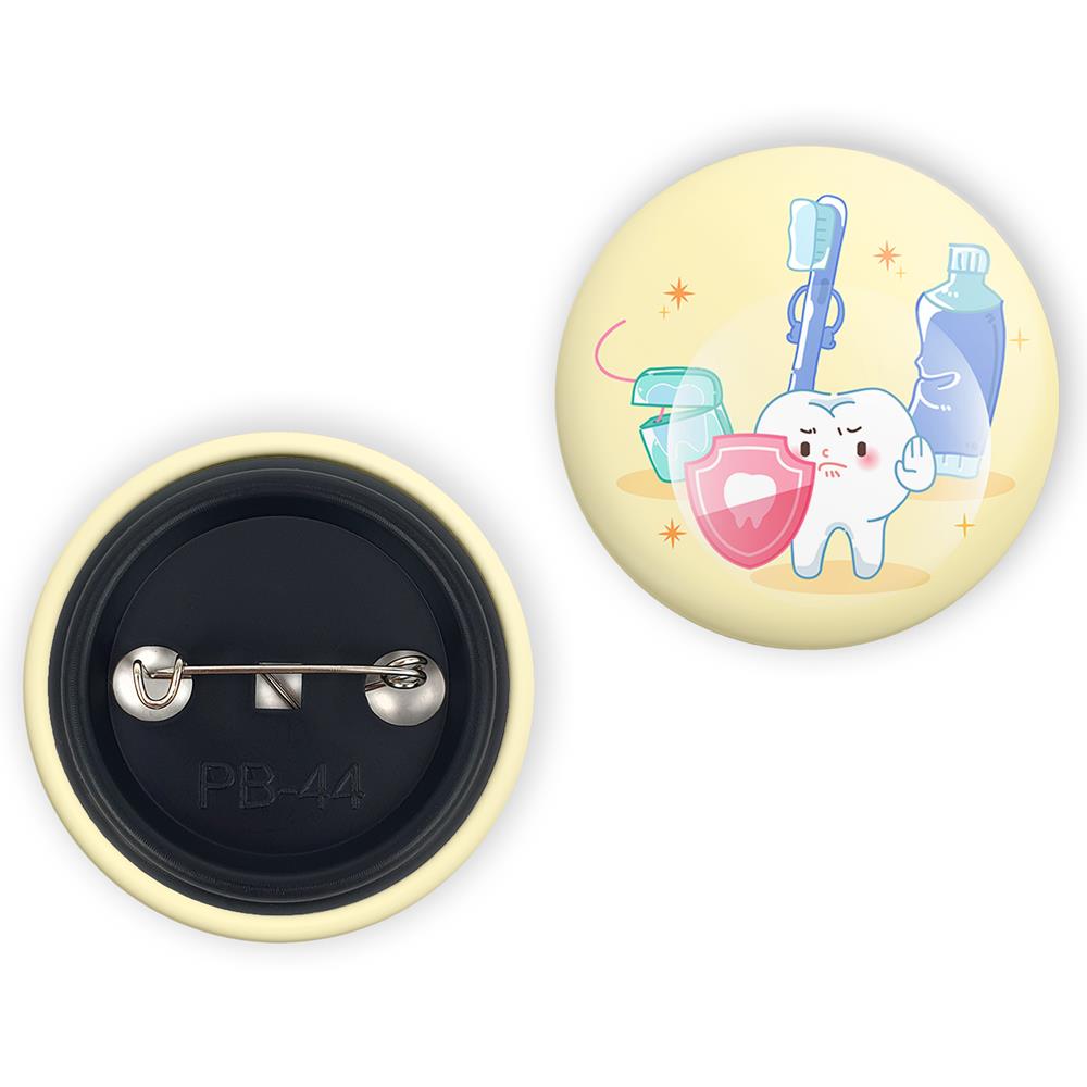پیکسل 44 میلی متری دندان و دندان پزشکی کودکانهخندالو با روکش سلفون حرارتی مات مخملی ضدخش و قطعه پشتی رنگی تولید شده است. قطعات پلاستیکی پشت پیکسل با سوزن یک تکه ثابت و بدون لغزش و جا به جایی، ایستایی بسیار بهتری نسبت به پشتی فلزی پیکسل دارند که این مهم در تولید این محصول نیز رعایت شده است.