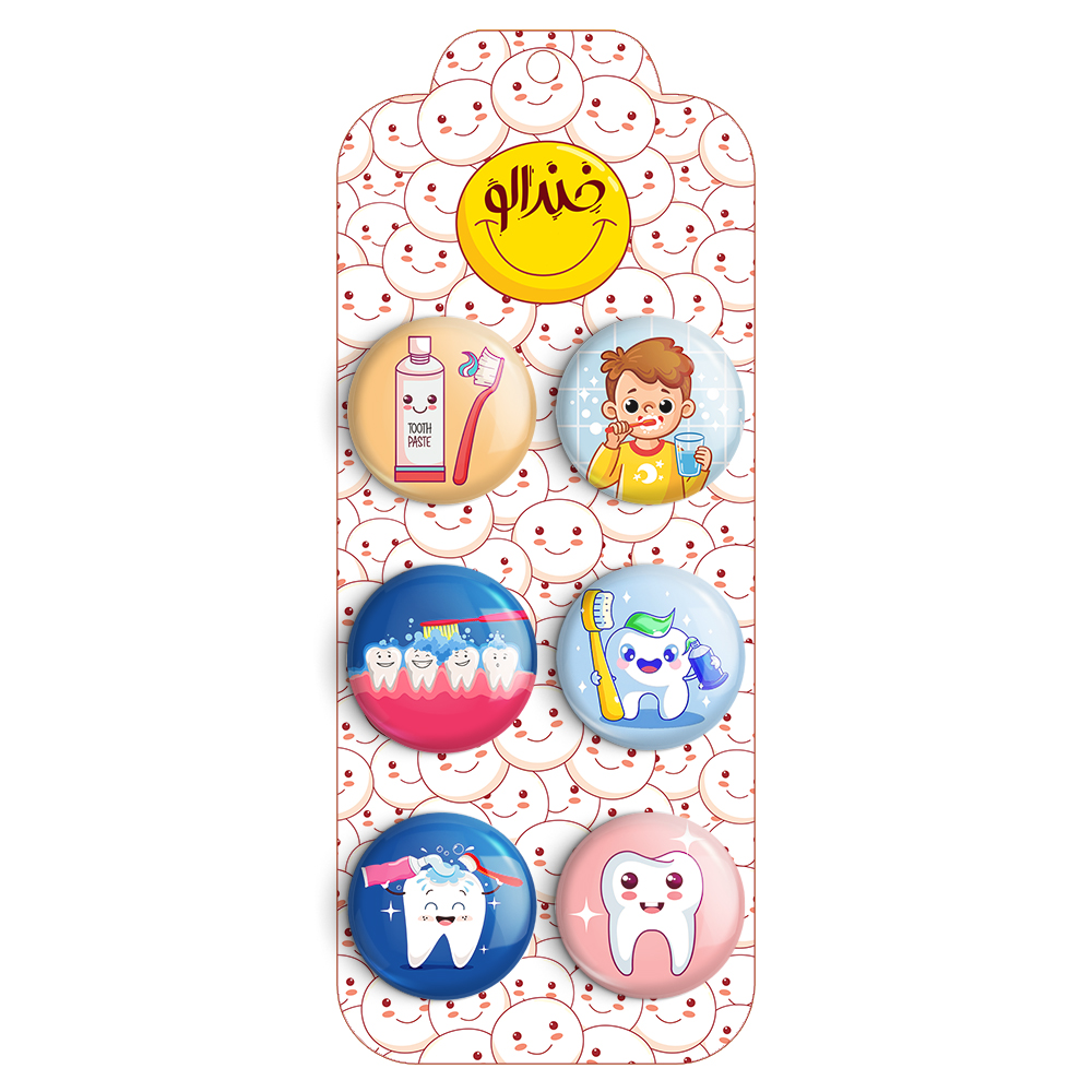 مجموعه 6 عددی پیکسل خندالو طرح دندان و دندان پزشکی کودکانه با روکش سلفون حرارتی براق ضدخش و قطعه پشتی رنگی تولید شده است. قطعات پشتی از میان 6 رنگ سفید، مشکی، صورتی، زرد، آبی و قرمز که با توجه به نوع و رنگبندی طرح روی پیکسل انتخاب شده اند تولید می شود و در هر بسته بندی مطابق عکس محصول می باشد. قطعات پلاستیکی پشت پیکسل با سوزن یک تکه ثابت و بدون لغزش و جا به جایی، ایستایی بسیار بهتری نسبت به پشتی فلزی پیکسل دارند که این مهم در تولید این محصول نیز رعایت شده است. چاپ پیکسل نیز با دستگاه های استاندارد و با بهترین سطح کیفی صورت گرفته و طرح با شفافیتی مثال زدنی و با سلفونی بدون شکست نور بر روی پیکسل نقش بسته است. همچنین بسته بندی جذاب و مینیمال پیکسل ها، آنها را مناسب هدیه کرده است..