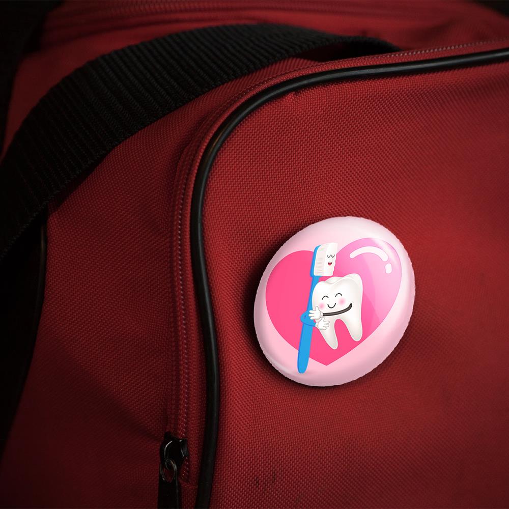 پیکسل 44 میلی متری دندان و دندان پزشکی کودکانهخندالو با روکش سلفون حرارتی مات مخملی ضدخش و قطعه پشتی رنگی تولید شده است. قطعات پلاستیکی پشت پیکسل با سوزن یک تکه ثابت و بدون لغزش و جا به جایی، ایستایی بسیار بهتری نسبت به پشتی فلزی پیکسل دارند که این مهم در تولید این محصول نیز رعایت شده است.