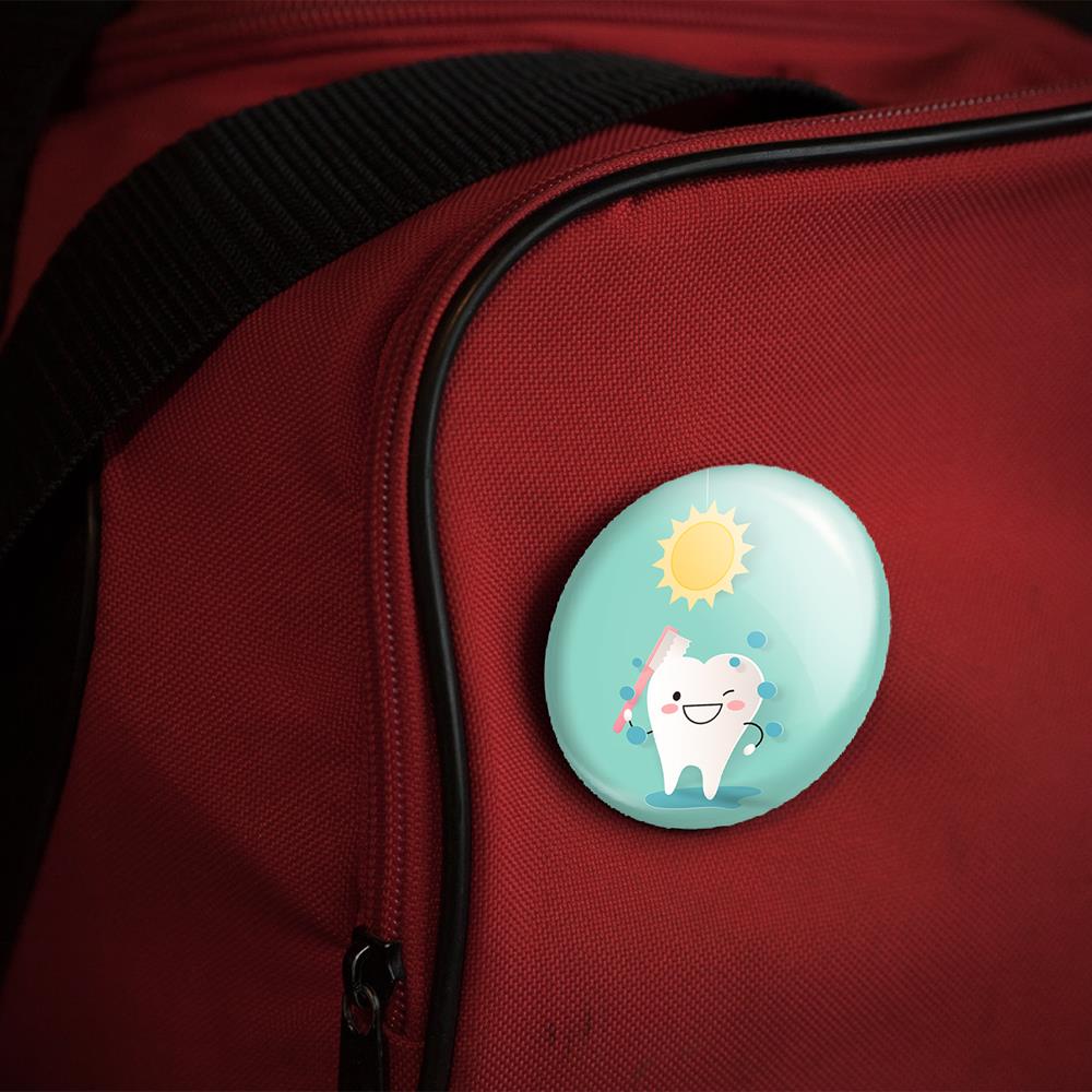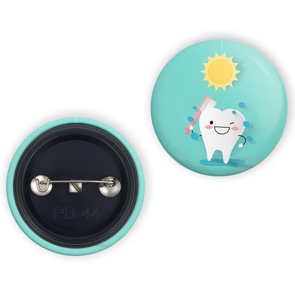 پیکسل 44 میلی متری دندان و دندان پزشکی کودکانهخندالو با روکش سلفون حرارتی مات مخملی ضدخش و قطعه پشتی رنگی تولید شده است. قطعات پلاستیکی پشت پیکسل با سوزن یک تکه ثابت و بدون لغزش و جا به جایی، ایستایی بسیار بهتری نسبت به پشتی فلزی پیکسل دارند که این مهم در تولید این محصول نیز رعایت شده است.