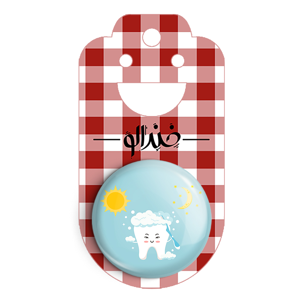 پیکسل 44 میلی متری دندان و دندان پزشکی کودکانهخندالو با روکش سلفون حرارتی مات مخملی ضدخش و قطعه پشتی رنگی تولید شده است. قطعات پلاستیکی پشت پیکسل با سوزن یک تکه ثابت و بدون لغزش و جا به جایی، ایستایی بسیار بهتری نسبت به پشتی فلزی پیکسل دارند که این مهم در تولید این محصول نیز رعایت شده است.