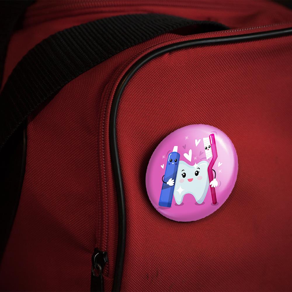 پیکسل 44 میلی متری دندان و دندان پزشکی کودکانهخندالو با روکش سلفون حرارتی مات مخملی ضدخش و قطعه پشتی رنگی تولید شده است. قطعات پلاستیکی پشت پیکسل با سوزن یک تکه ثابت و بدون لغزش و جا به جایی، ایستایی بسیار بهتری نسبت به پشتی فلزی پیکسل دارند که این مهم در تولید این محصول نیز رعایت شده است.