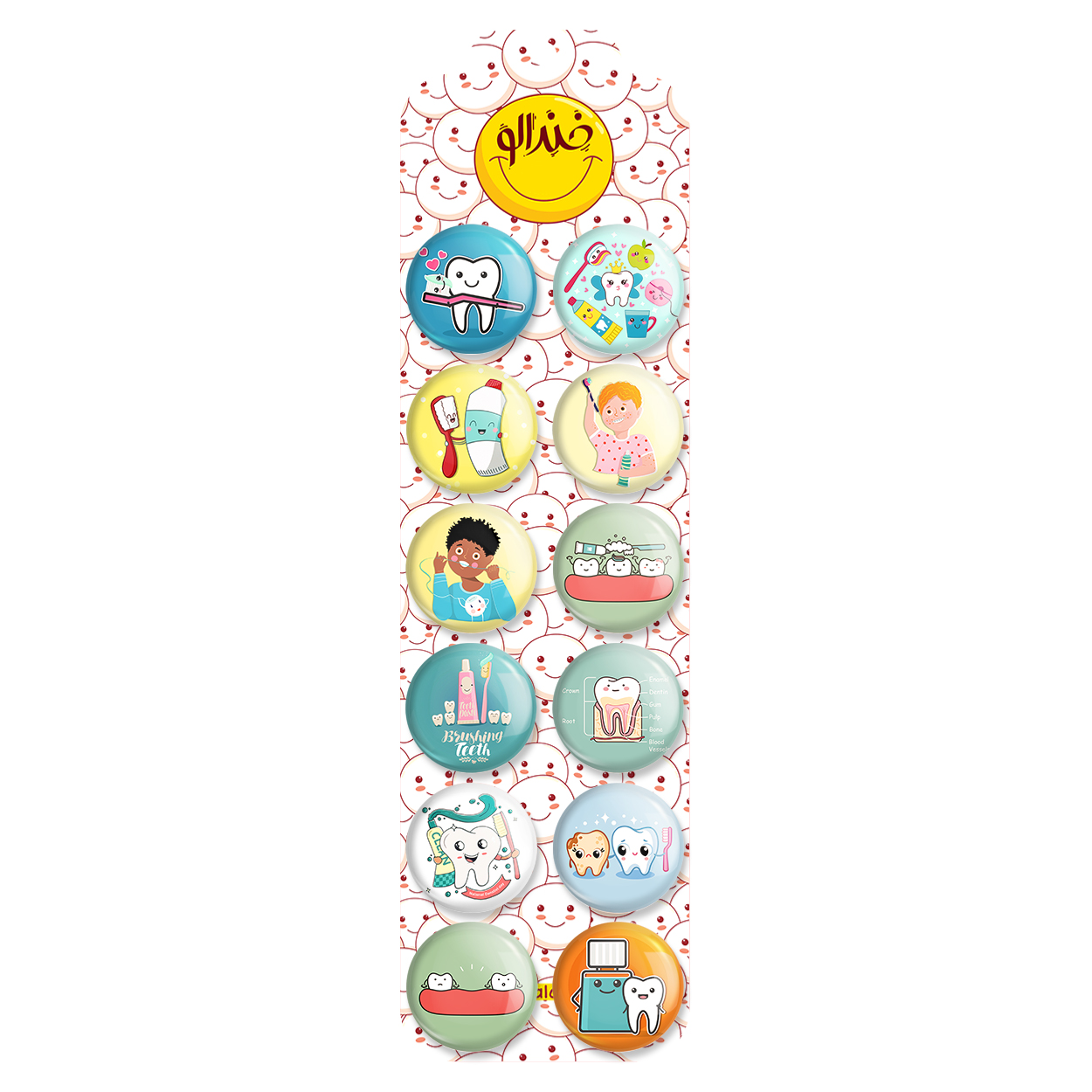 پک 12 عددی پیکسل خندالو طرح دندان و دندان پزشکی کودکانه با روکش سلفون حرارتی براق ضدخش و قطعه پشتی رنگی تولید شده است. قطعات پشتی از میان 6 رنگ سفید، مشکی، صورتی، زرد، آبی و قرمز که با توجه به نوع و رنگبندی طرح روی پیکسل انتخاب شده اند تولید می شود و در هر بسته بندی مطابق عکس محصول می باشد. قطعات پلاستیکی پشت پیکسل با سوزن یک تکه ثابت و بدون لغزش و جا به جایی، ایستایی بسیار بهتری نسبت به پشتی فلزی پیکسل دارند که این مهم در تولید این محصول نیز رعایت شده است.